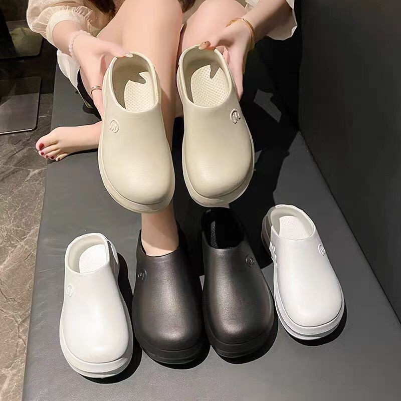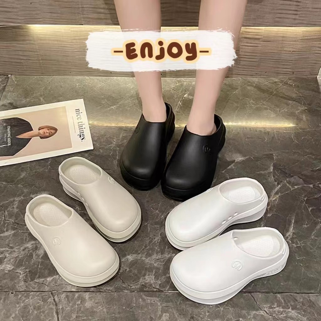 ?EnJoy? พร้อมส่ง (TO-1010) รองเท้าแบบสวม หุ้มส้น ดีเทลตัวMด้านข้าง มี3สี