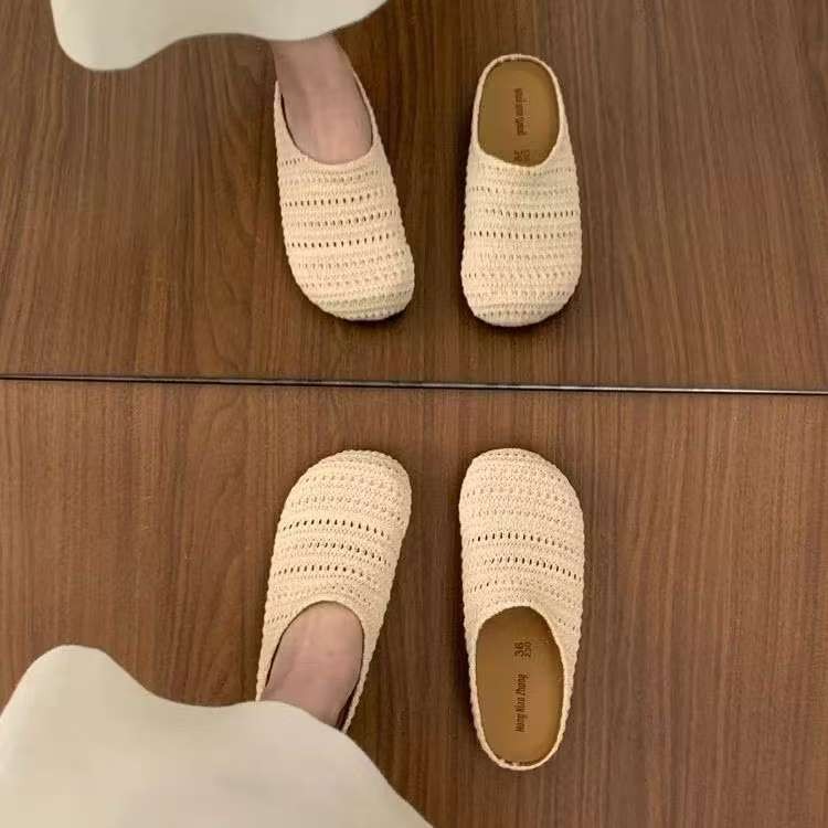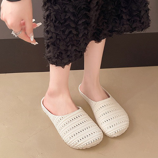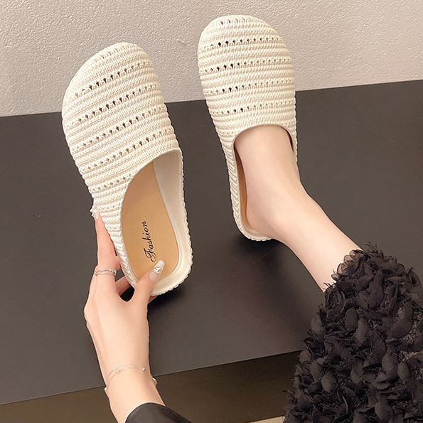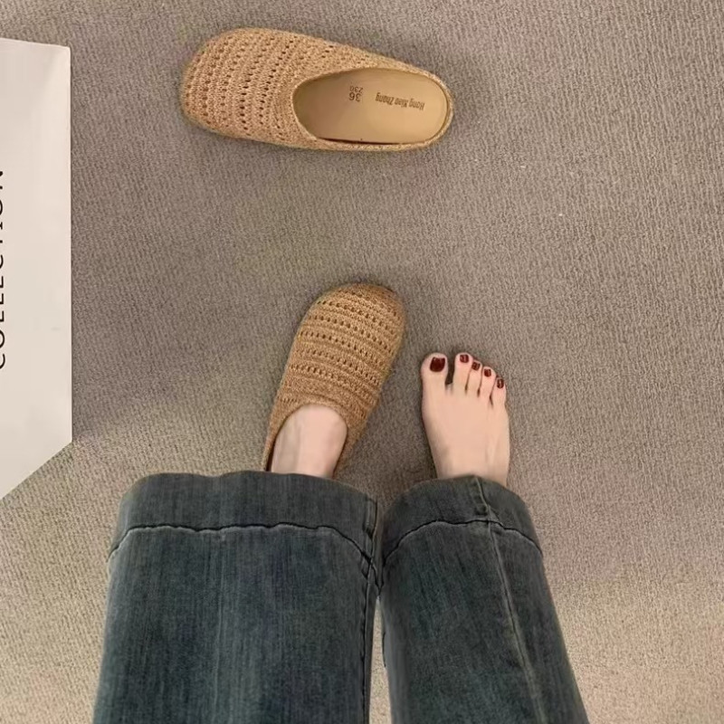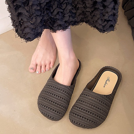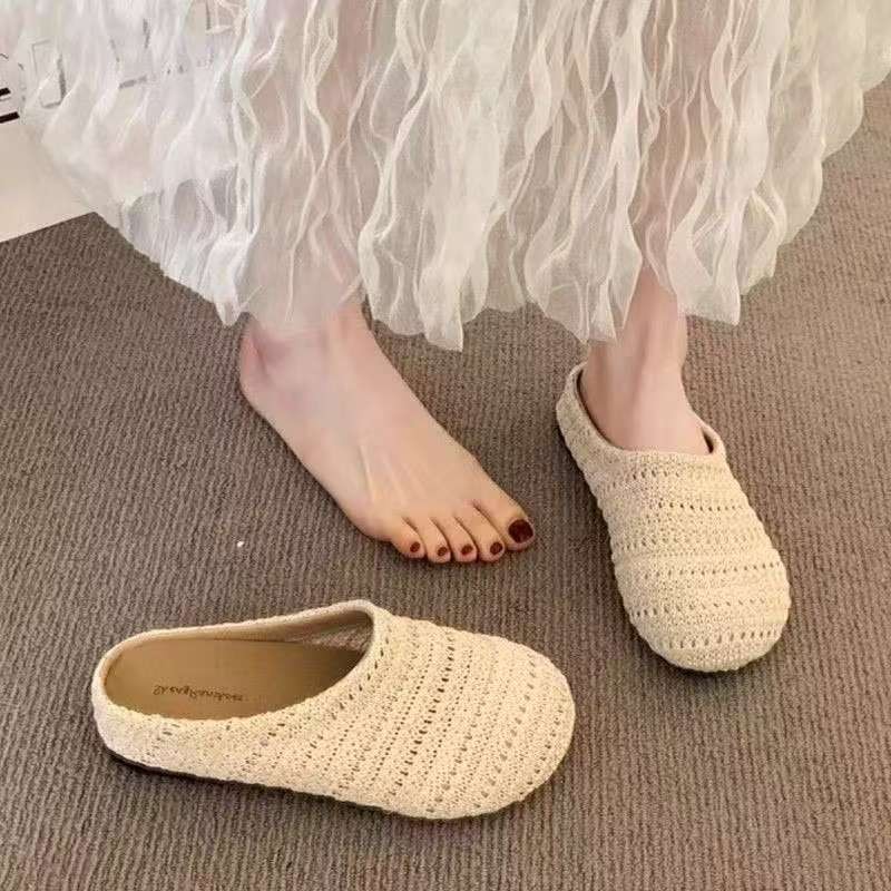 ?EnJoy?พร้อมส่ง (TO-2503) รองเท้าแตะสวม แบบปิดนิ้วเท้า แฟชั่นเกาหลี ดีไซน์ถัก ระบายอากาศได้ดี