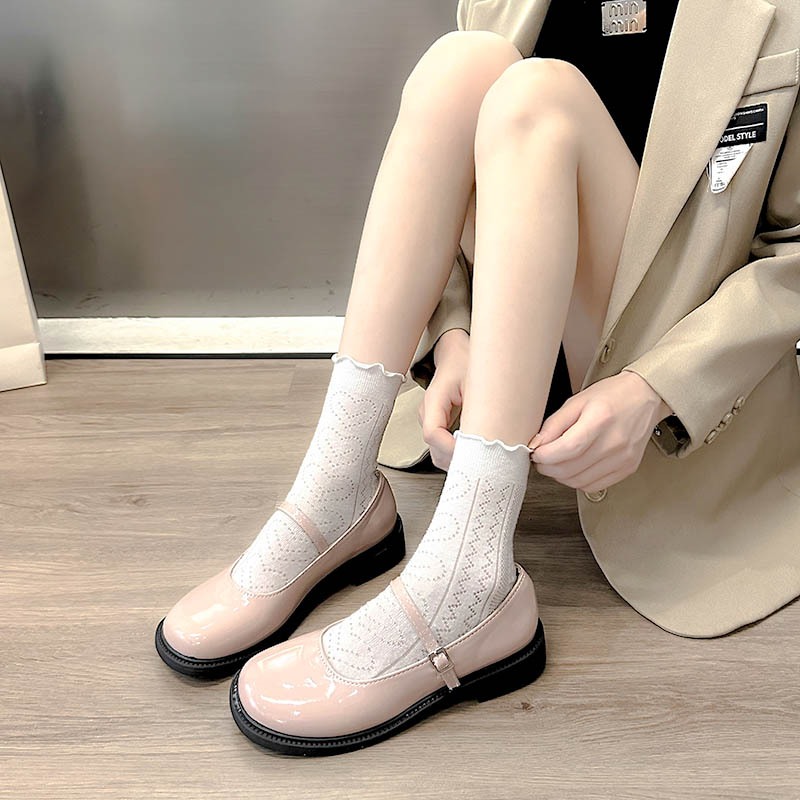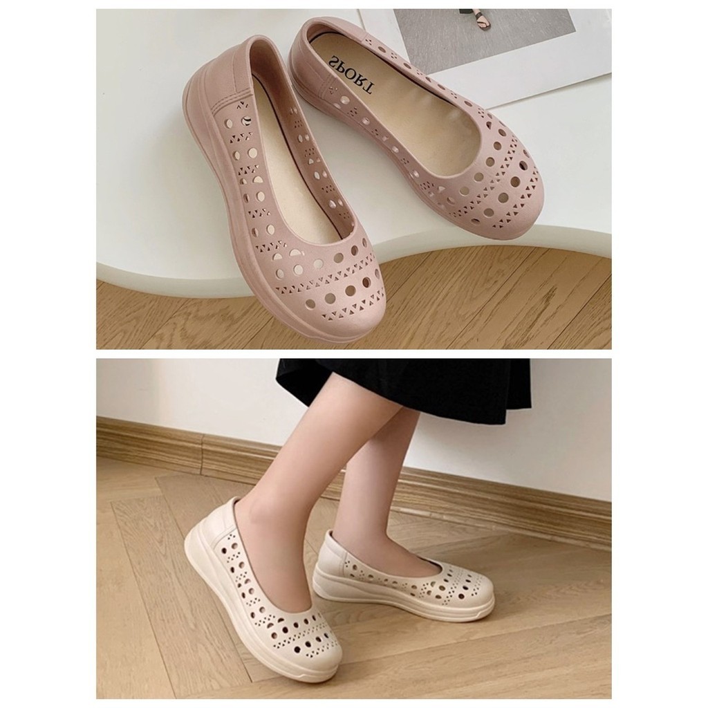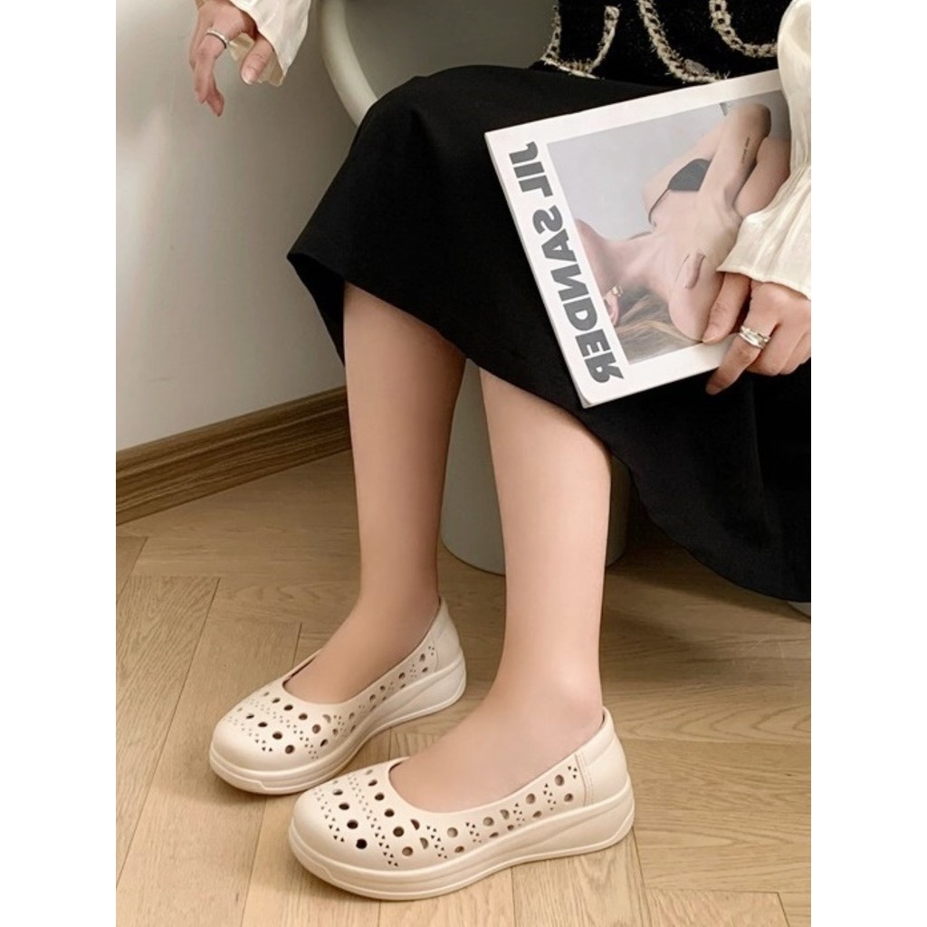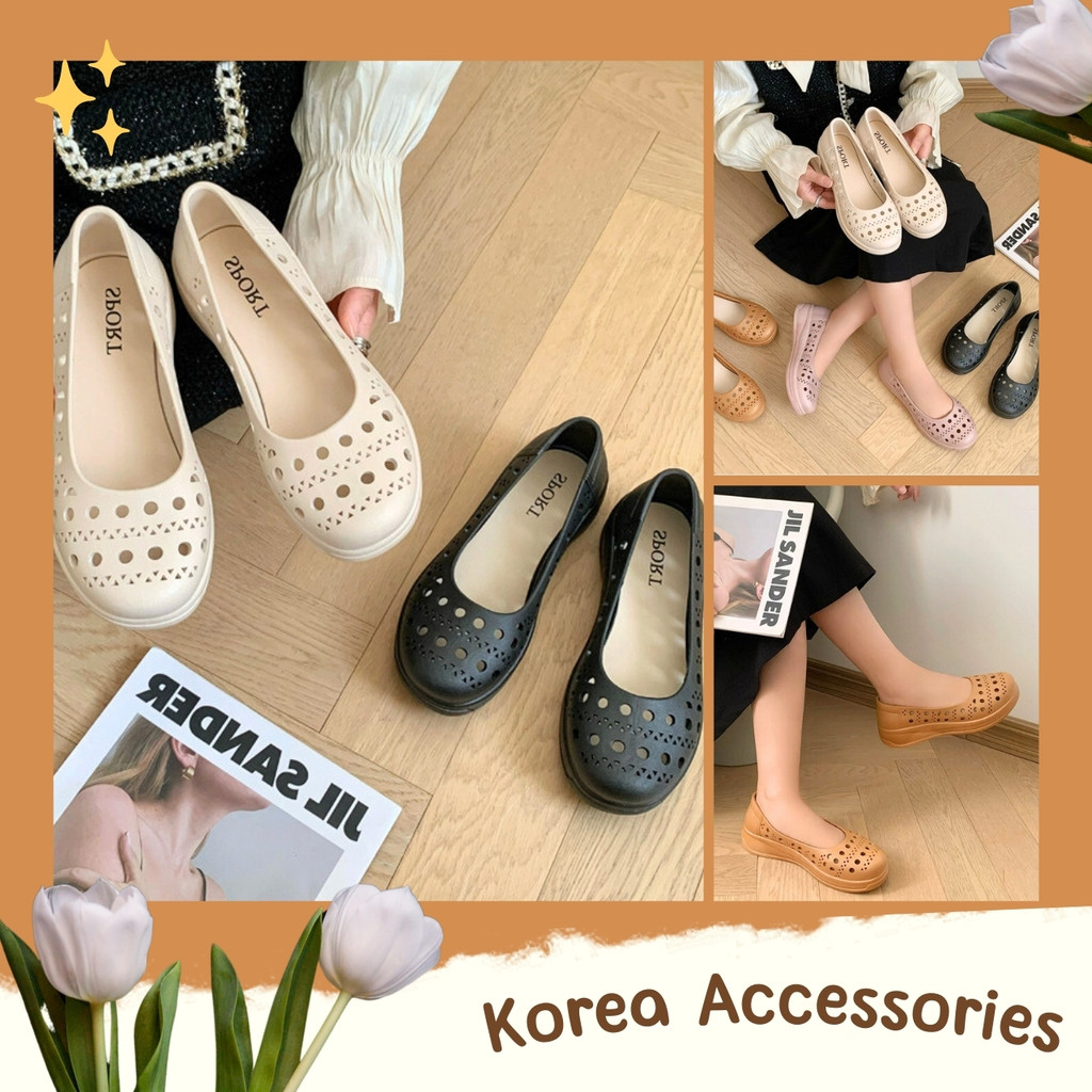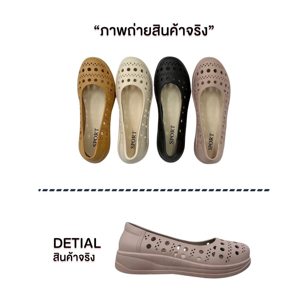 ?Korean Style Shop Online? คัชชูยางหัวมน แต่งฉลุลายกลมเหลี่ยม 4 สี นุ่มสบาย (85)