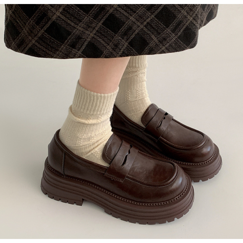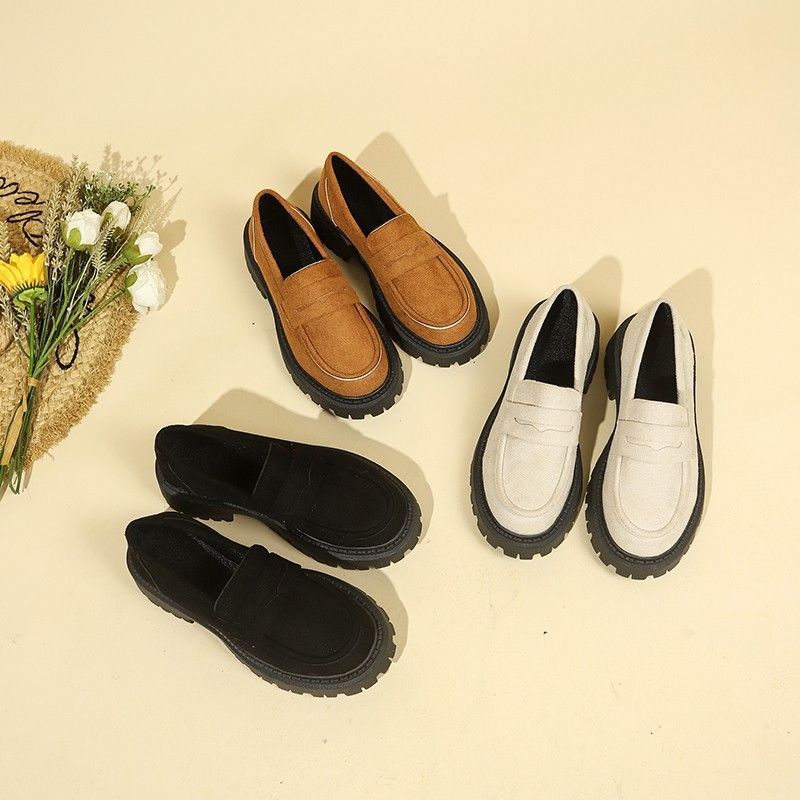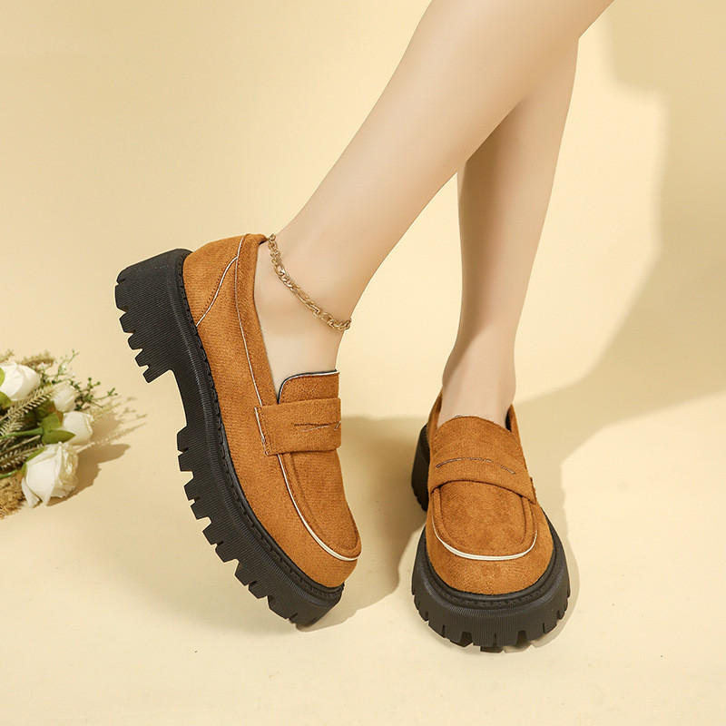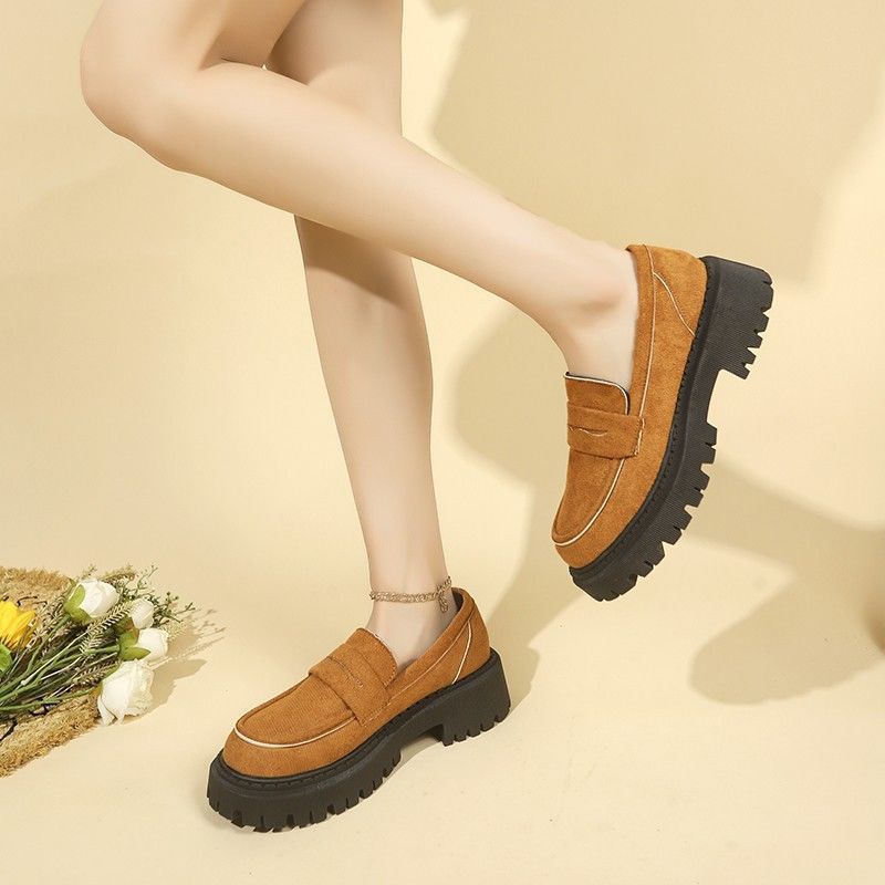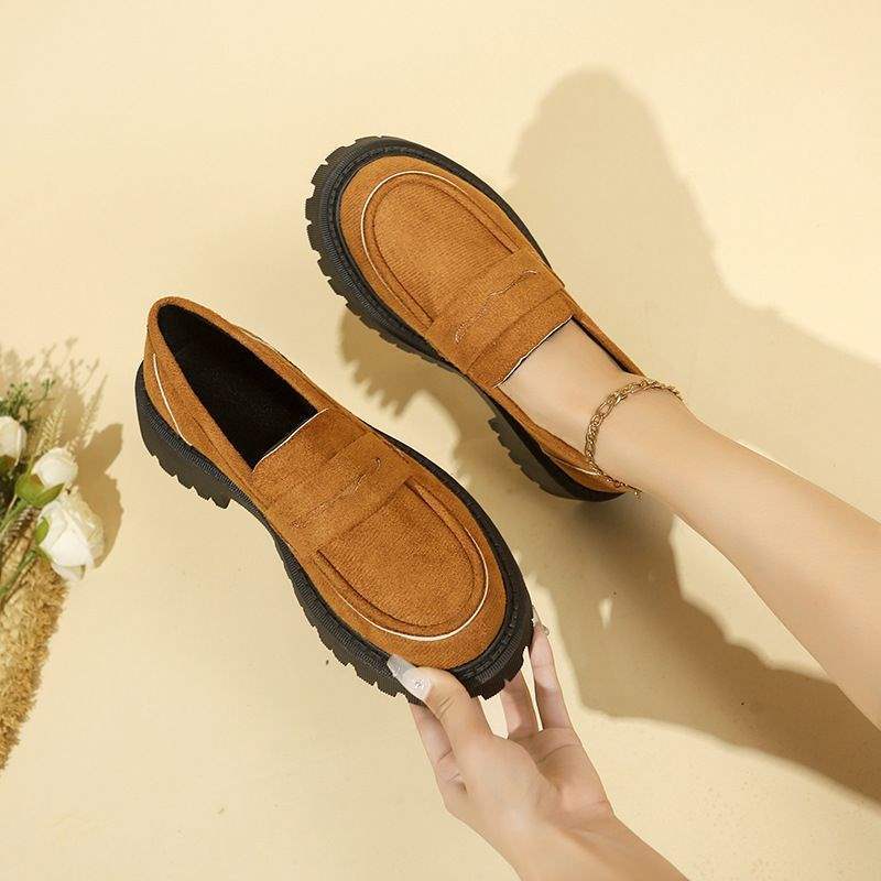 (พร้อมส่งจากไทย) รองเท้าคัทชูหนังโลฟเฟอร์ สีน้ำตาล พื้นนิ่ม รุ่น PEANUT LOAFER