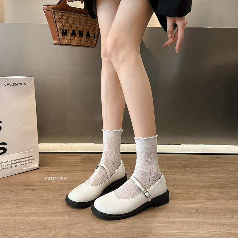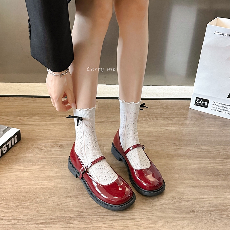 ?ส่งใน24ชม? รองเท้าหนังเเมรี่เเจนหัวกลมสุดหวาน ส้นสูงใส่ได้หลากหลาย
