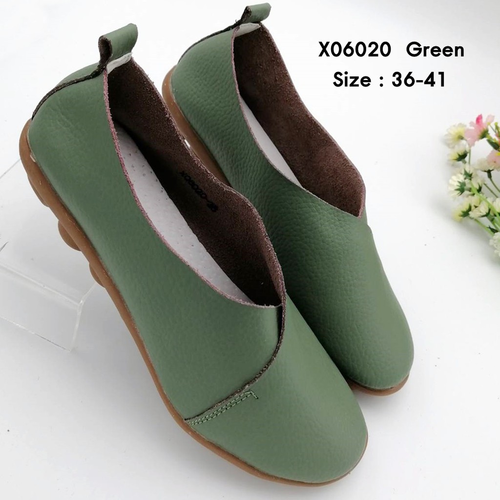 prettycomfort รองเท้าเพื่อสุขภาพ หนังแท้ หนังวัว หนังนิ่มมากใส่สบายมีปุ่มกันลื่น มีถึงไซส์41 X06020