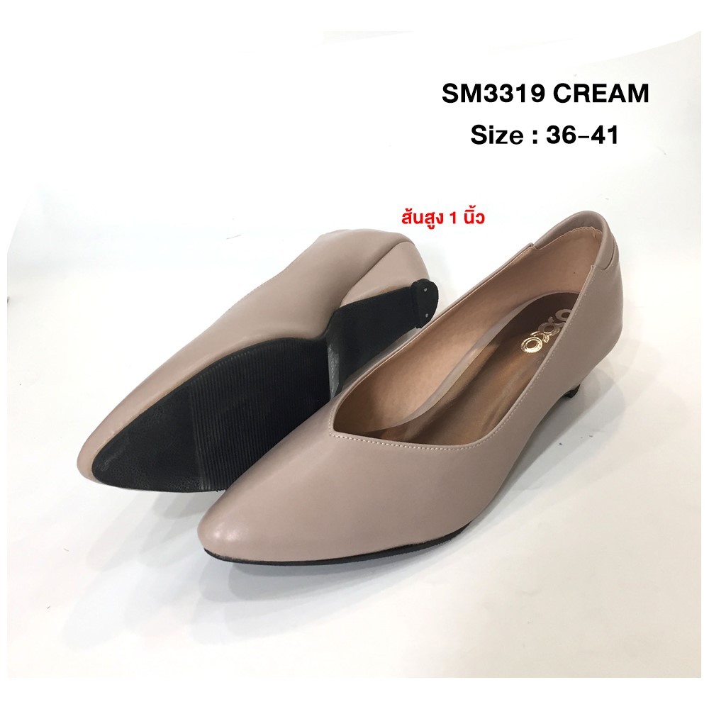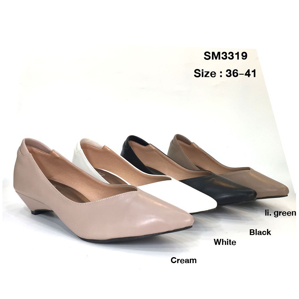 prettycomfort รองเท้าคัทชู ผู้หญิง ทรงหัวแหลม สูง1นิ้ว ส้นกันลื่นตอกมือ หนังพียู นิ่มใส่สบาย SM3319