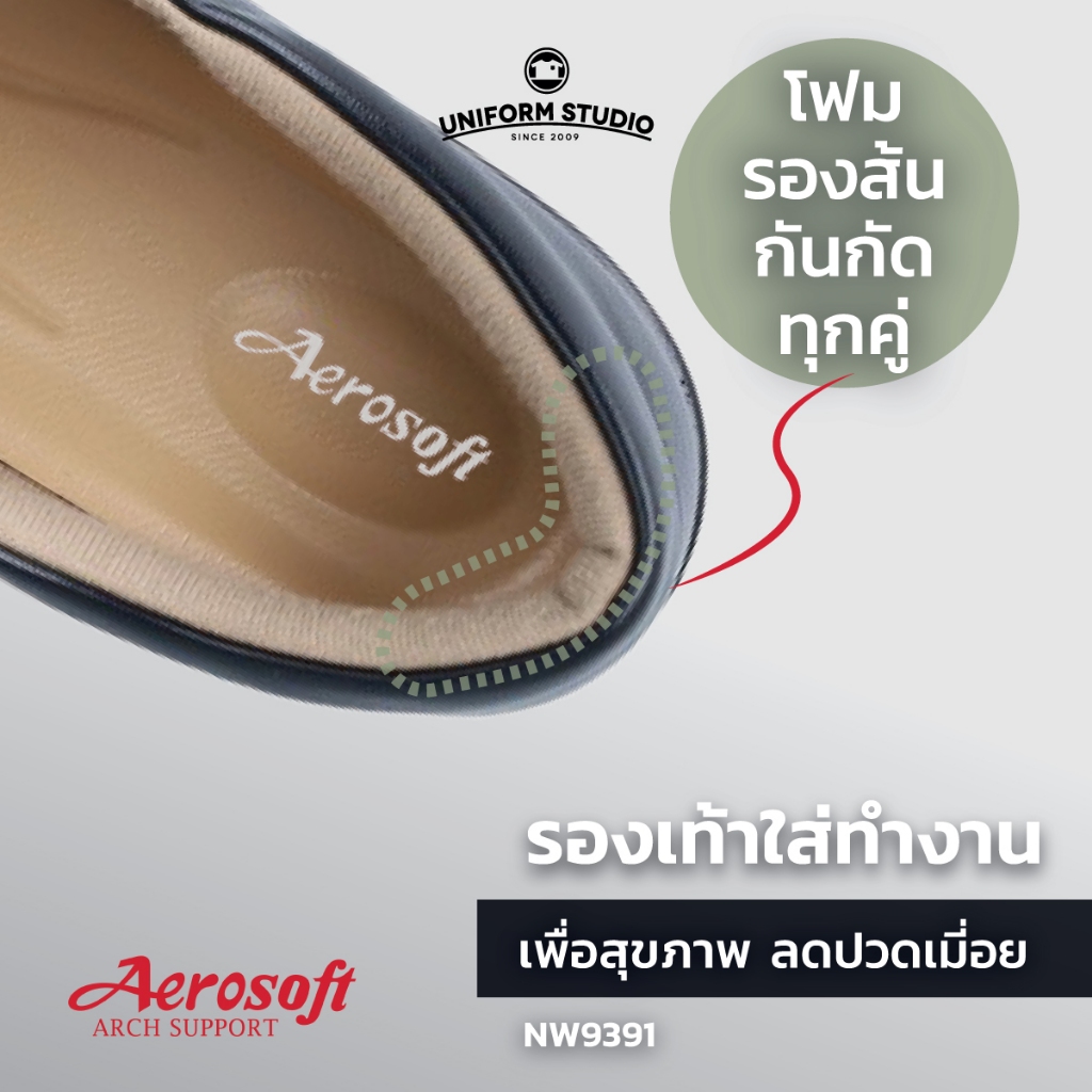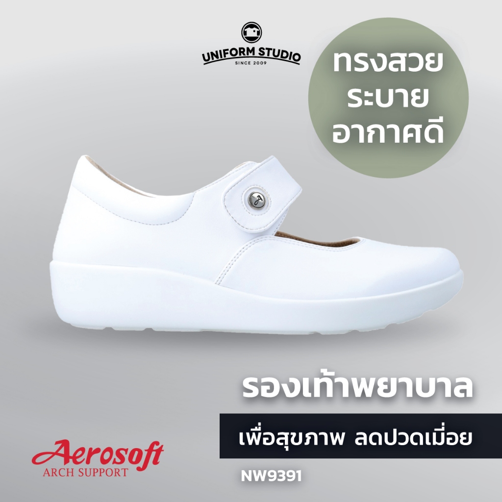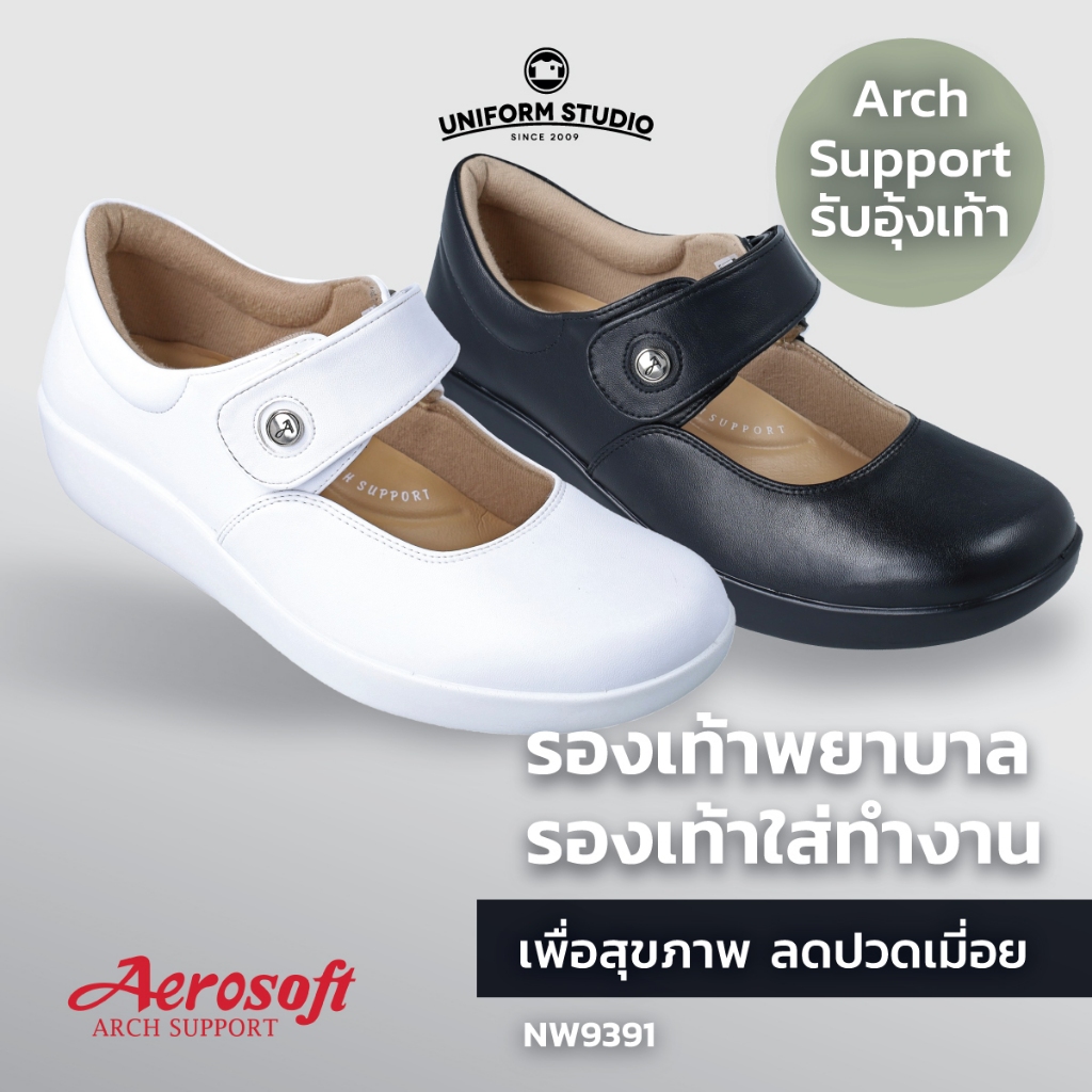 รองเท้าคัทชูพยาบาล Aerosoft (NW9391) เพื่อสุขภาพ ใส่ทำงาน สีขาว สีดำ