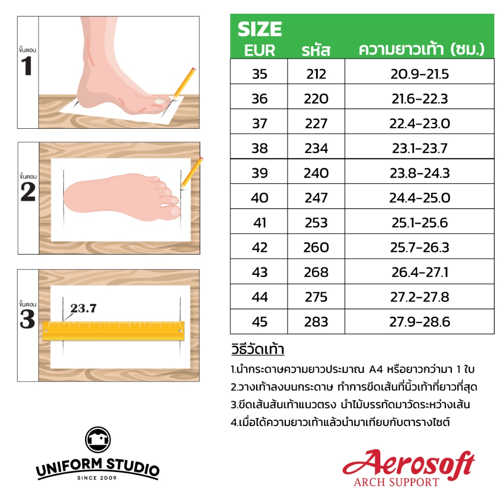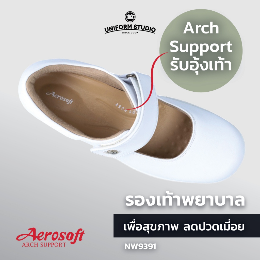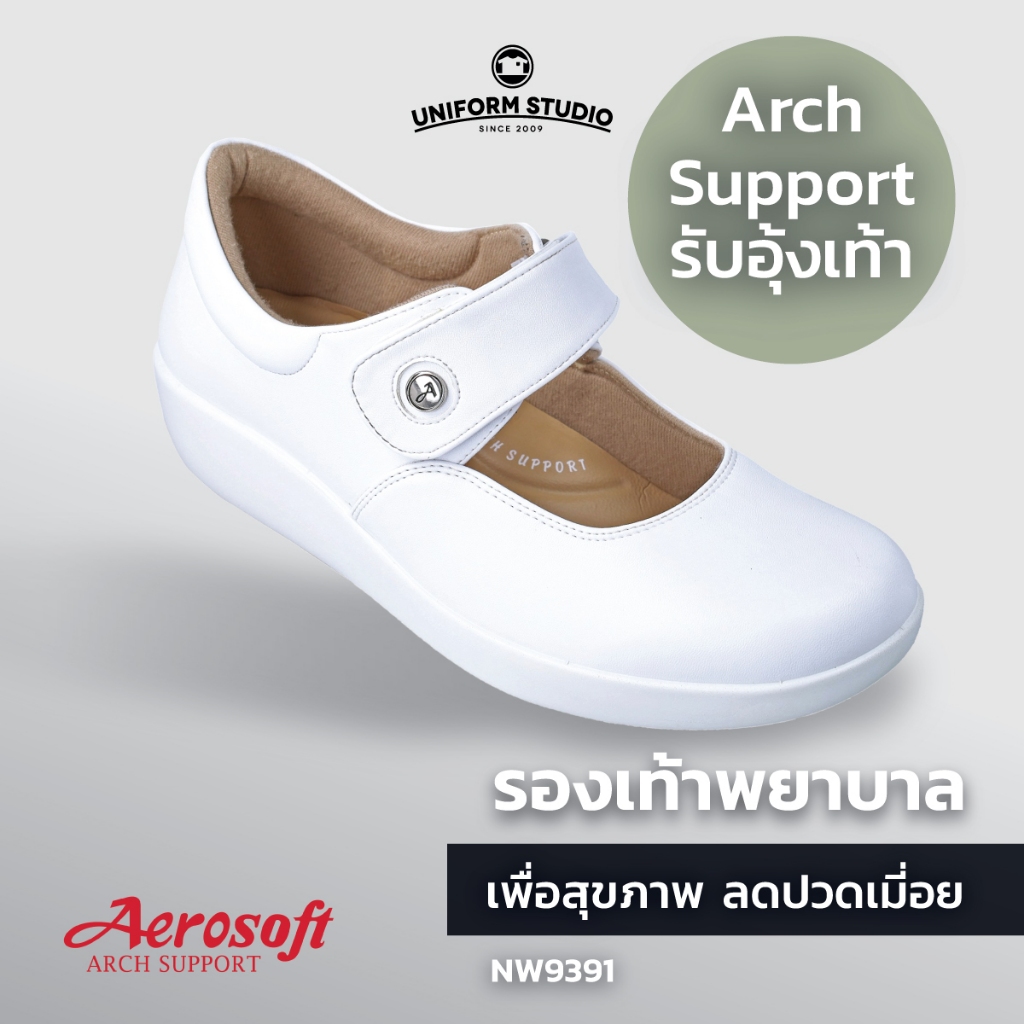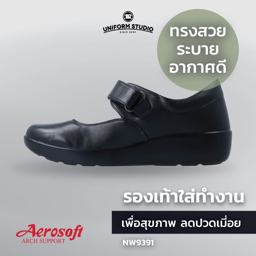 รองเท้าคัทชูพยาบาล Aerosoft (NW9391) เพื่อสุขภาพ ใส่ทำงาน สีขาว สีดำ