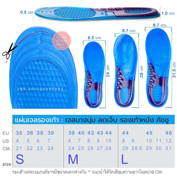 YGB แผ่นเจลพยุงเท้า เจลรองเท้า เจลเสริมอุ้งเท้า สำหรับรองเท้าคัชชู แก้ปวดเมื่อย เพิ่มความนุ่มสบาย