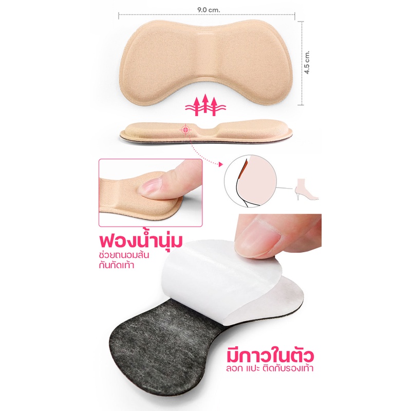 Zakii Mall แผ่นกันกัด แผ่นกันรองเท้ากัด เนื้อนิ่ม ช่วยแก้รองเท้าหลวม 1 แพค ต่อ คู่ Sponge heel pad