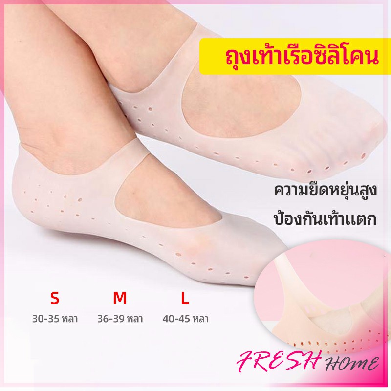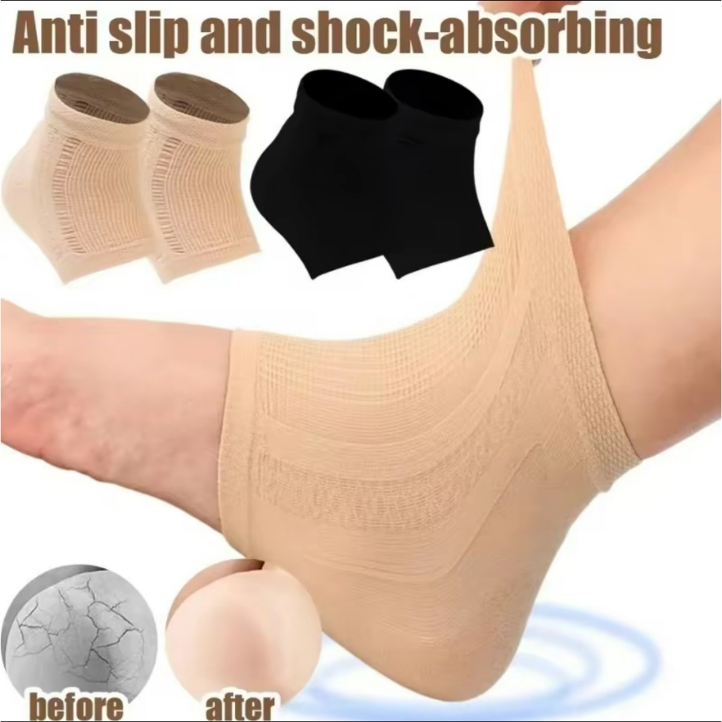 ถุงเท้าซิลิโคน ดูดซับแรงกระแทก ป้องกันส้นเท้าแตก ป้องกันการลื่น 1 คู่