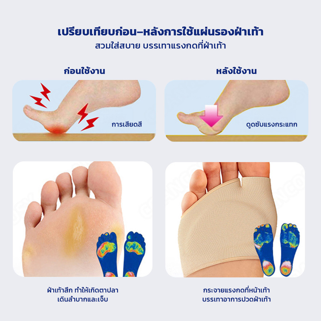แผ่นรองฝ่าเท้าด้านหน้า บรรเทาอาการปวดเท้า กันลื่น ใส่ออกกำลังกายได้ เพิ่มความสบายขณะเดิน