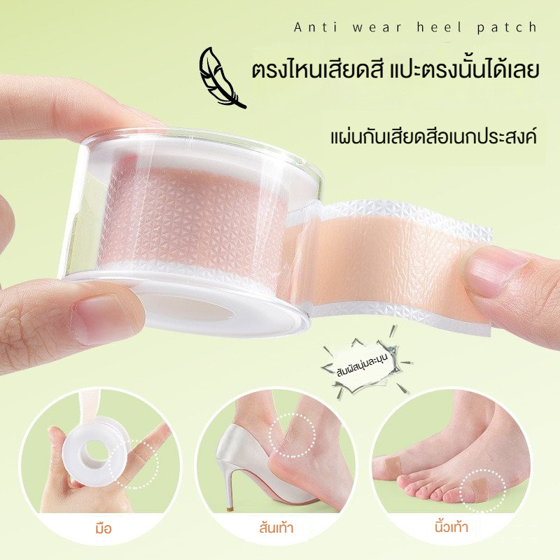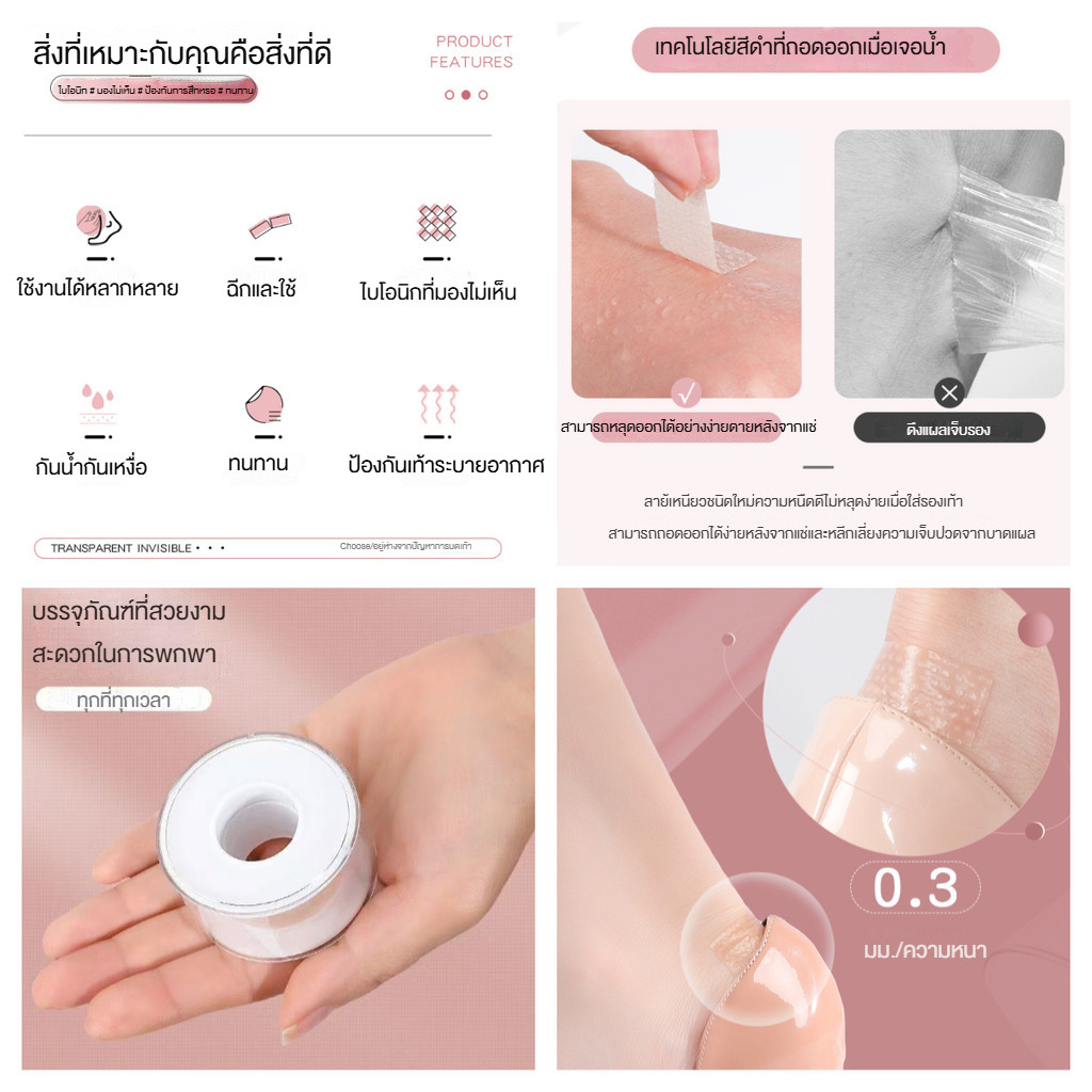 แผ่นป้องกันการเสียดสีเท้าซิลิโคนแบบล่องหน วัสดุฟิล์ม PU กันน้ำ-กันเหงื่อ ระบายอากาศดี ใช้ได้ทั้งส้นเท้าและข้อมือ ใหม่ล่าสุด