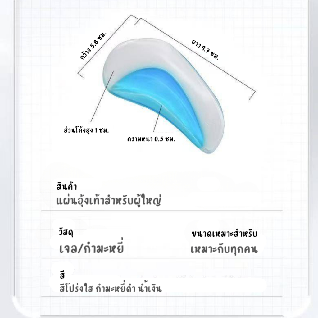 แผ่นรองพื้นรองเท้าซิลิโคนช่วยรองรับอุ้งเท้า สายรัดส้นเท้าป้องกันการเสียดสี ช่วยบรรเทาอาการปวดเท้าแบน
