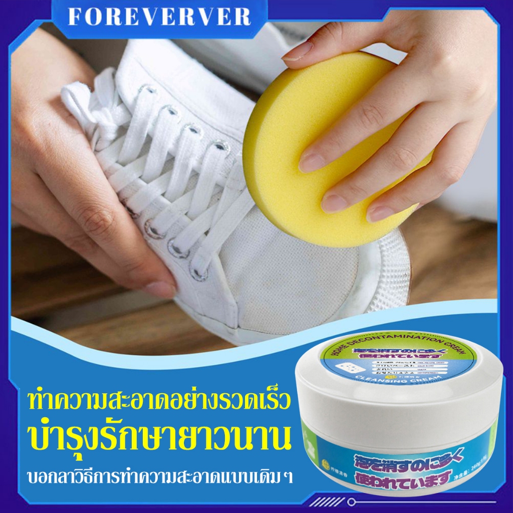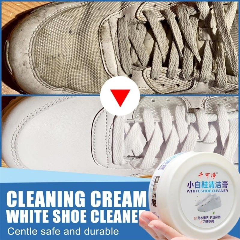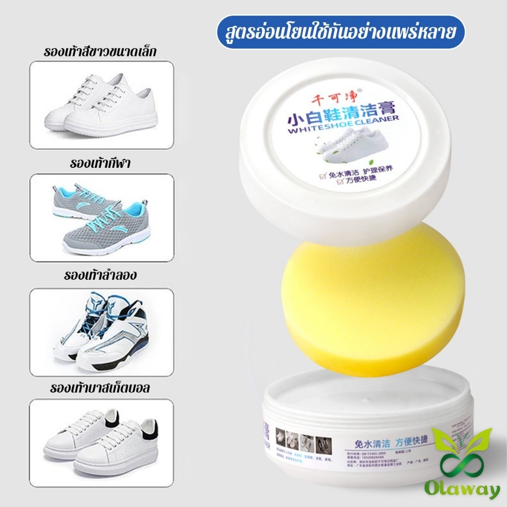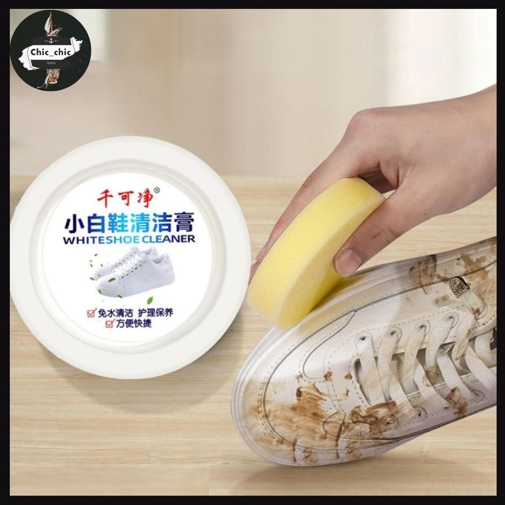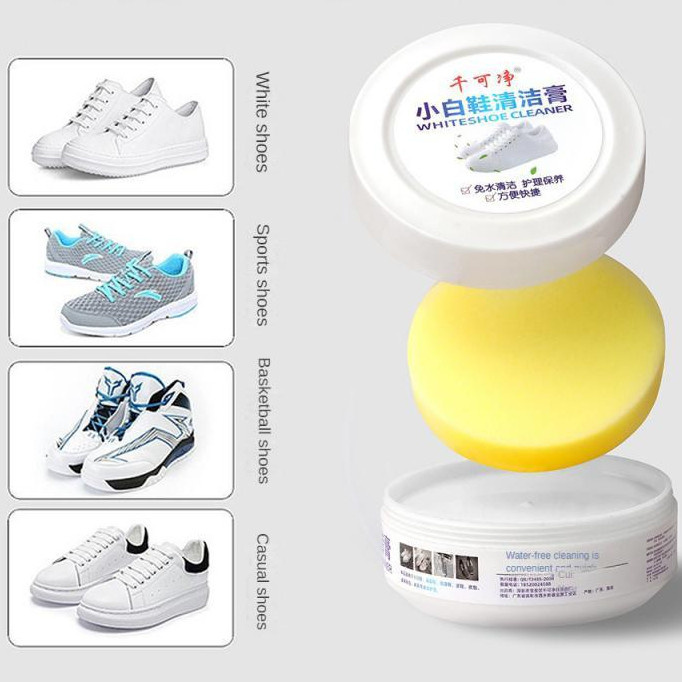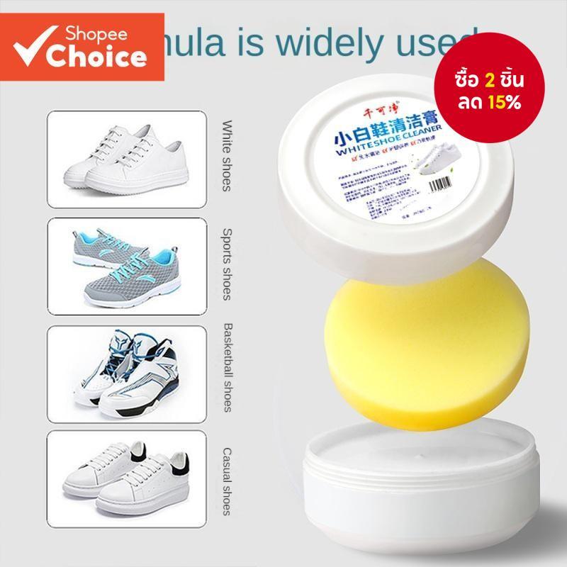 ครีมขัดรองเท้า ขาว shoes clean ?พร้อมส่ง? เช็ด รองเท้า ไม่ต้องล้าง ขจัดคราบดำ แบบกระปุก พร้อมฟองน้ำ Shoe Cleaning Cream