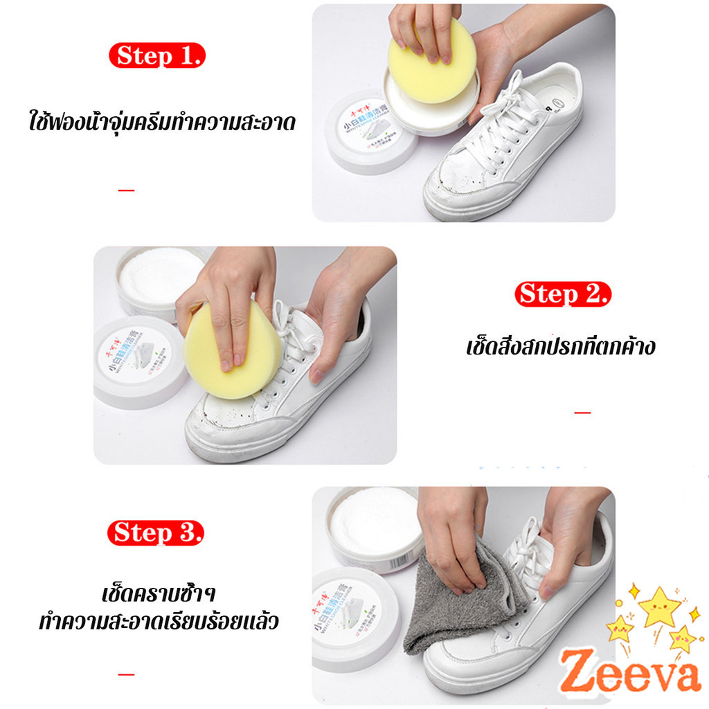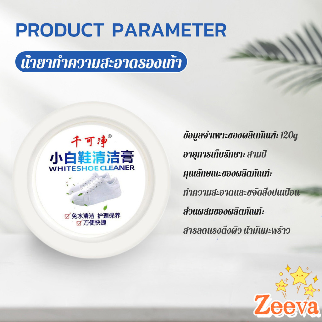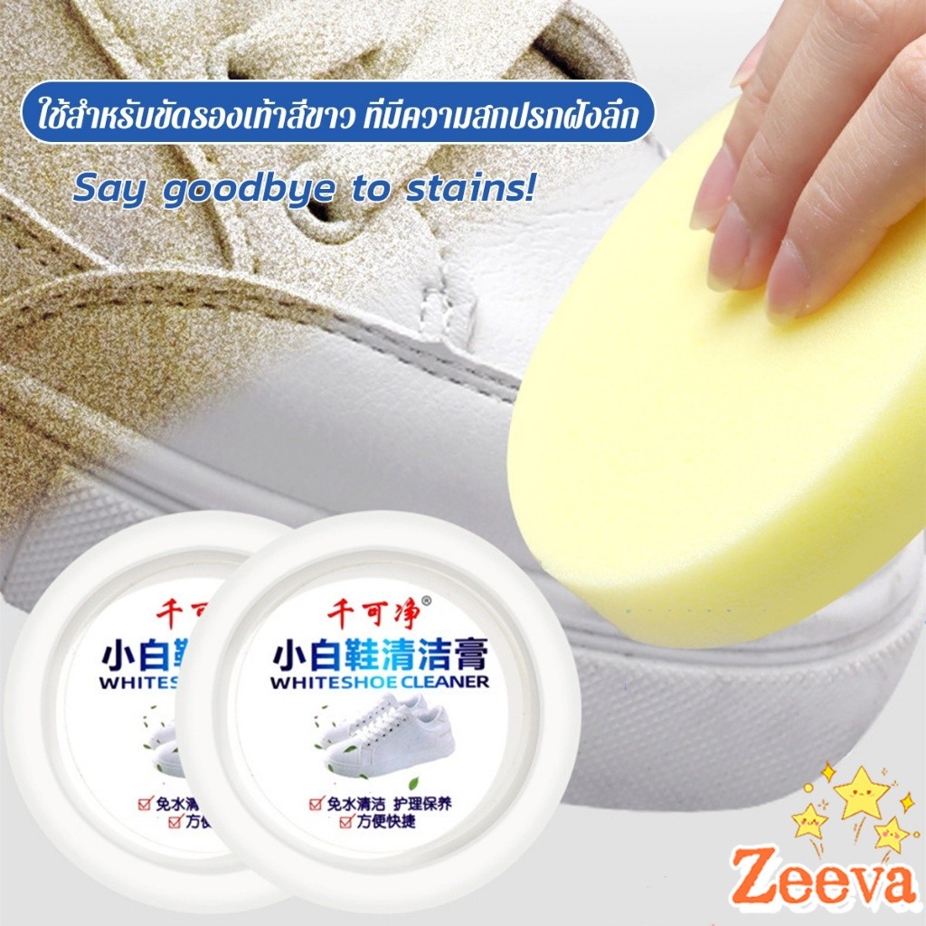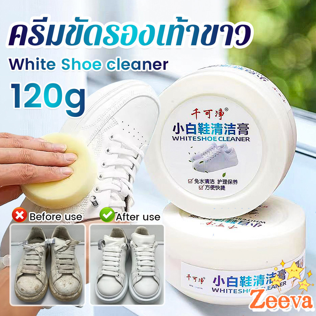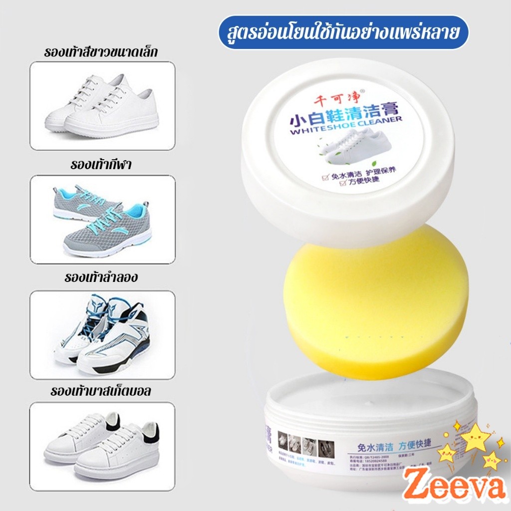 Zeeva【มีสินค้าในสต๊อก】 ครีมขัดรองเท้า 120g น้ำยาขัดรองเท้าขาว ไม่ต้องล้าง พร้อมฟองน้ำสำหรับขัด Shoe Cleaning Cream