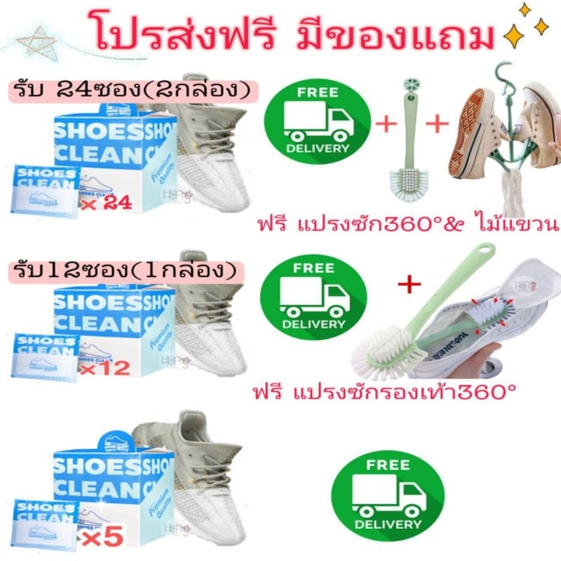 ชุดเต็ม 2 กล่อง (24 ซอง) ส่งฟรี&แถม×2 ผงซักรองเท้า SHOES CLEAN (เจ้าแรกในไทย) แถมถุงซักทุกซอง