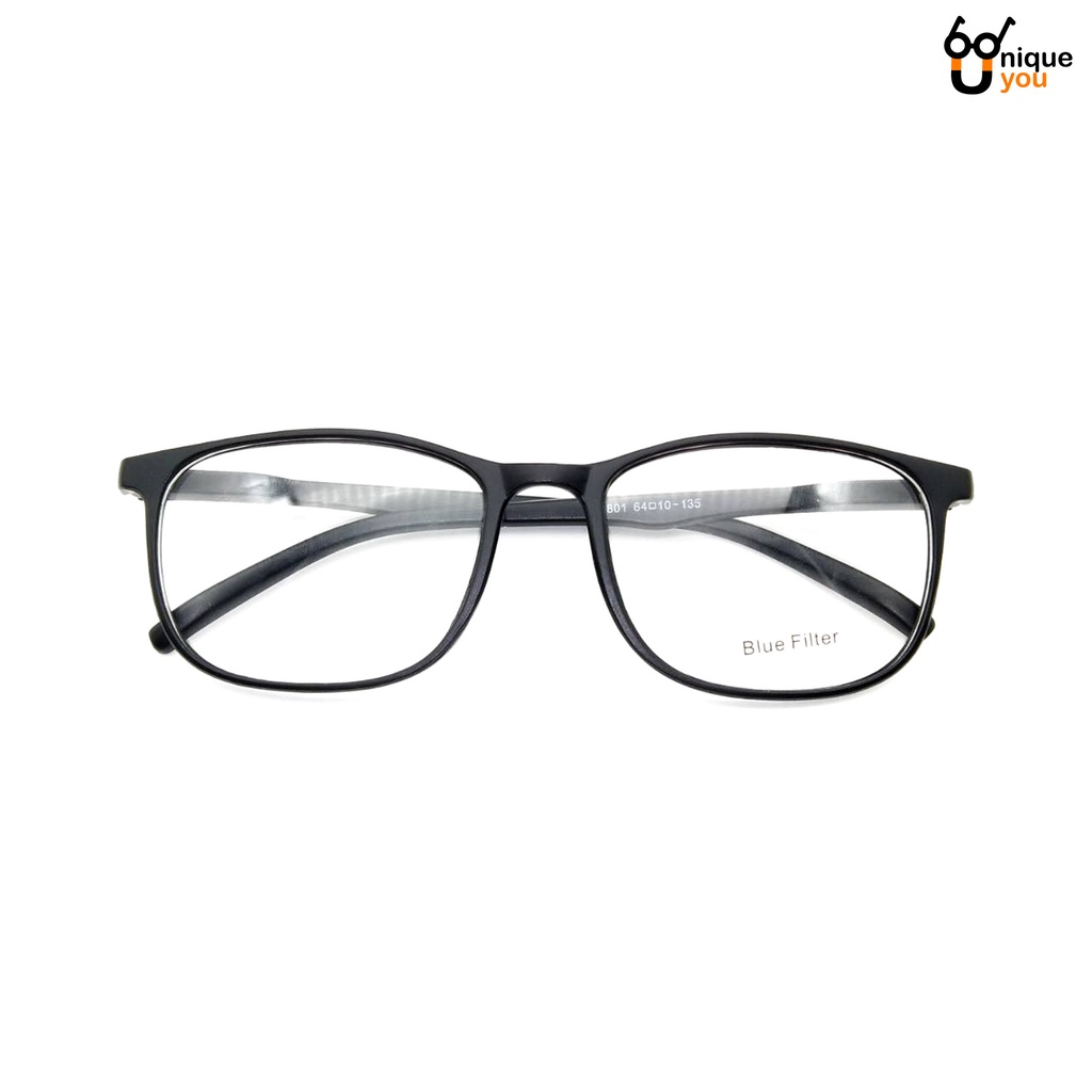 UniqueYou แว่นตากรองแสงสีฟ้า Blue filter สายตาปกติ ไม่มีค่าสายตา กรองแสงจากหน้าจอมือถือและคอมพิวเตอร์ 6801black