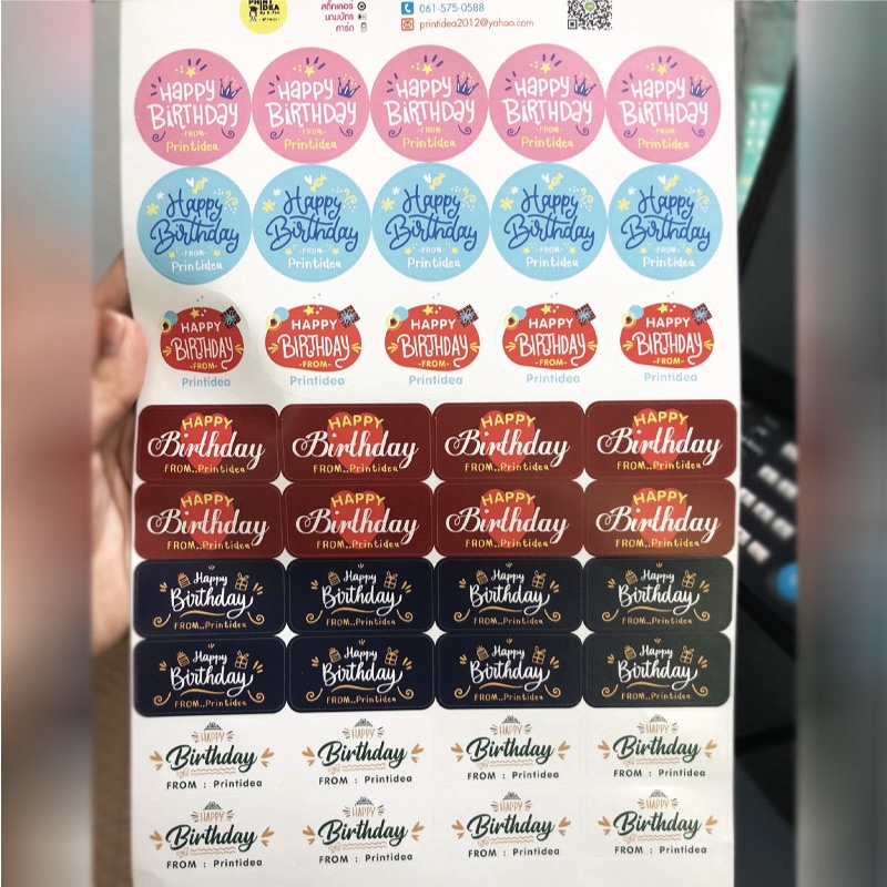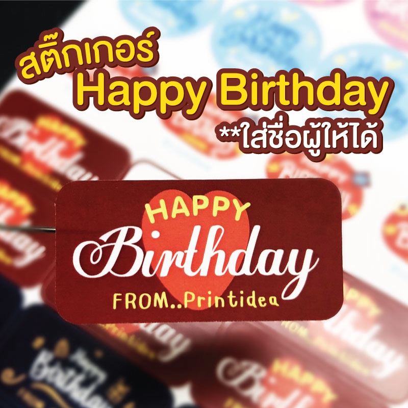 สติ๊กเกอร์ Happy Birthday ใส่ชื่อผู้ให้ได้ PP ขาวด้าน กันนํ้า