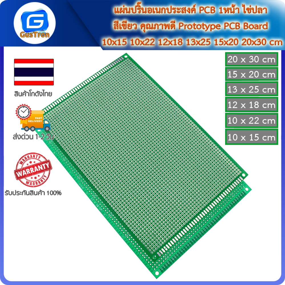 แผ่นปริ๊นอเนกประสงค์ PCB 1หน้า ไข่ปลา สีเขียว คุณภาพดี Prototype PCB Board 10x15 10x22 12x18 13x25 15x20 20x30 cm