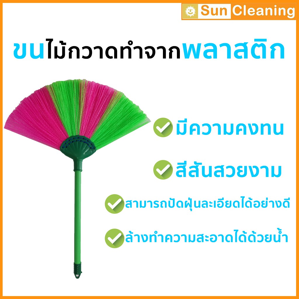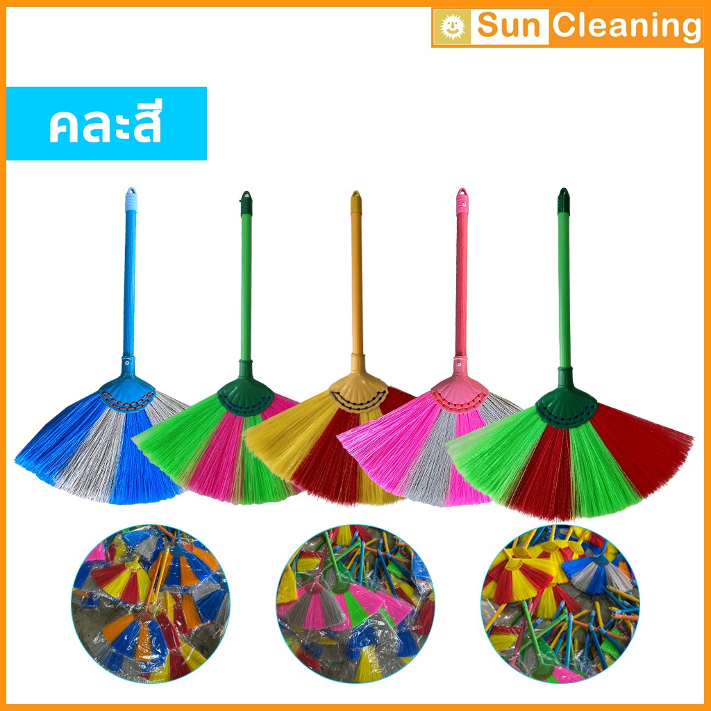 Sun Brand ไม้กวาดขนพลาสติกด้ามสั้น 35ซม. ไม้กวาดรุ่นจิ๋ว ขนสองสี ปัดฝุ่น กวาดสะอาด (คละสี)