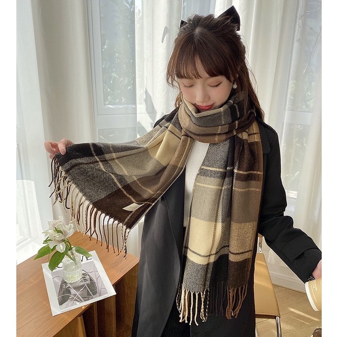 ใหม่?ผ้าพันคอ ไหมพรมแคชเมียร์ ลายสก๊อต ☃️