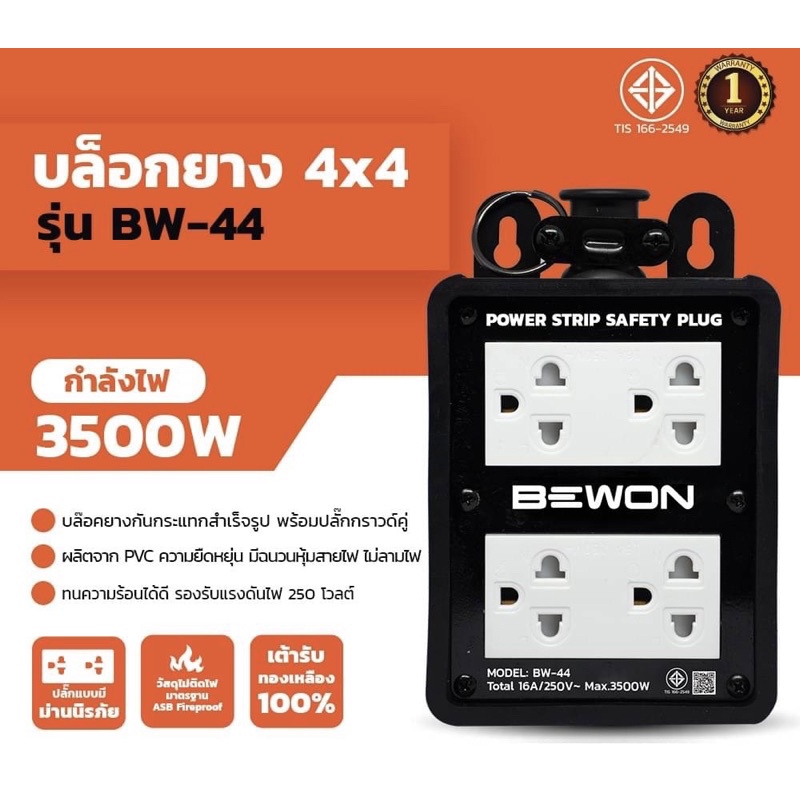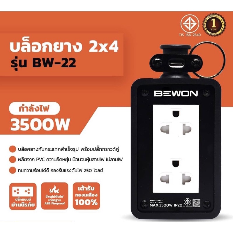 บล็อกยาง 2×4 และ 4×4 พร้อมปลั๊กกราวคู่มีม่าน บีวัน Bewon บล็อกยางกันกระแทก นาโน