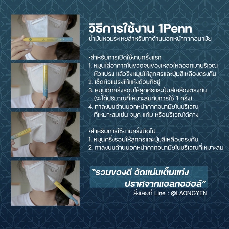 ละอองเย็น 1PENN วันเพ็นน์ น้ำมันหอมระเหยสำหรับหน้ากากอนามัย