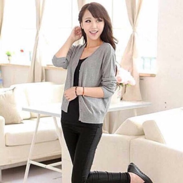 เสื้อคลุมคาร์ดิแกน ไหมพรม กระดุมมุก สี ดำ/ เทาเข้ม /กรมเข้ม/เทากลาง/เทาอ่อน / ขาวงาช้าง /ขาว