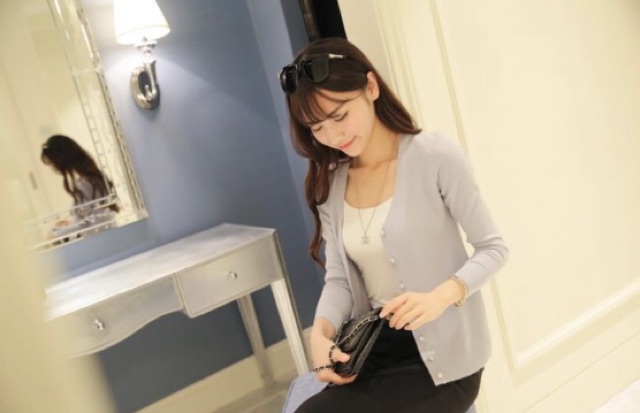 เสื้อคลุมคาร์ดิแกน กระดุมมุก ผ้าไหมพรม ผ้านิ่มมาก เนื้อนุ่ม ใส่สบาย_x000D_
