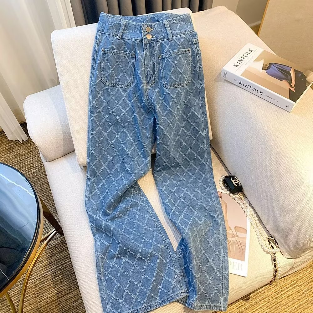 Lingge กางเกงยีนขากว้าง เอวสูง ทรงหลวม ทรงตรง อเนกประสงค์ สําหรับผู้หญิง