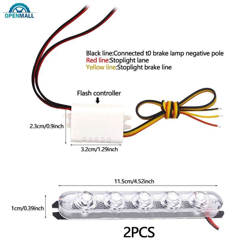 Om ไฟ Led 5ดวงไฟกระพริบไฟเตือนไฟท้ายไฟเบรคฉุกเฉินสําหรับรถยนต์รถจักรยานยนต์รถตํารวจ 2 ชิ้น