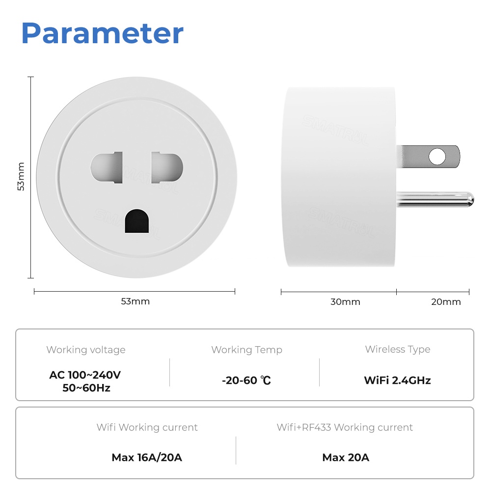 Smatrul 20A/16A RF433+WIFI Tuya Wifi อะแดปเตอร์ปลั๊กซ็อกเก็ตอัจฉริยะเชื่อมต่อบลูทูธ Us Eu สําหรับ Google Home Alexa Tmall Genie