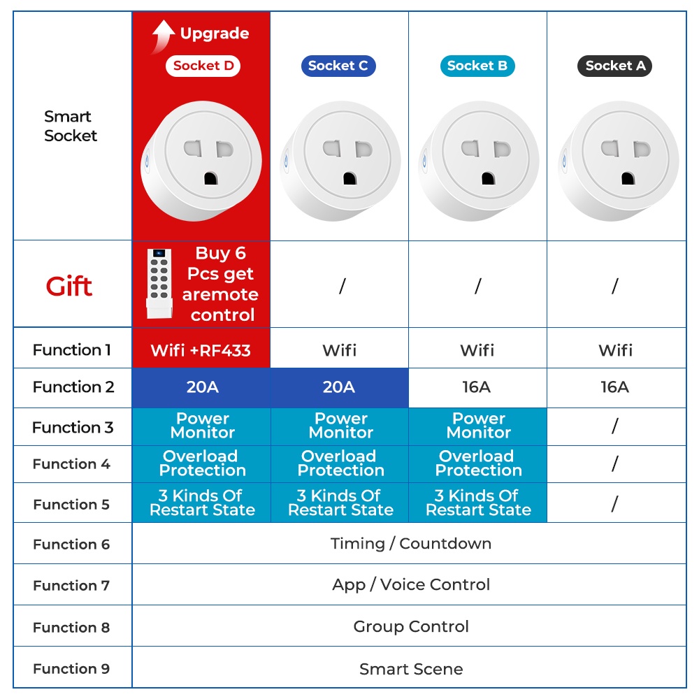 เรายังคงเพิ่มประสิทธิภาพและปรับปรุงผลิตภัณฑ์เพิ่มซ็อกเก็ตด้วยฟังก์ชันความถี่วิทยุ wifi + RF433 ผลิตภัณฑ์นี้สามารถใช้กับรีโมทคอนโทรล RF โทรศัพท์มือถือและรีโมทคอนโทรลพร้อมวิธีการควบคุมที่หลากหลายและตัวเลือกที่หลากหลาย (ซื้อซ็อกเก็ต Wifi + RF433 RF 6 ช่องรับ
