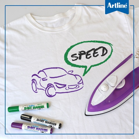 ข้อแนะนำ : หลังจากเขียนลายเสื้อลงบนผ้าแล้ว ควรทิ้งไว้ให้แห้ง และใช้เตารีดรีดทับลงไปบนลายที่วาด เพื่อให้สีลายเสื้อติดคง