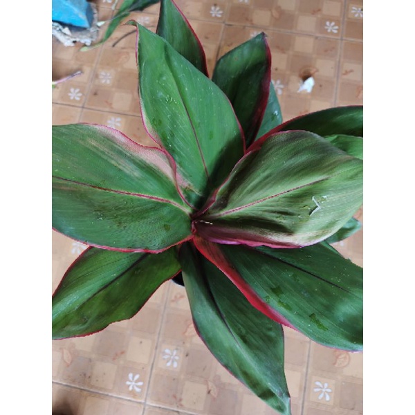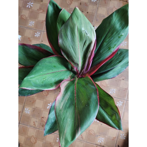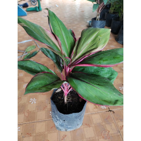 หมากผู้หมากเมีย (ต้นเงาะถอดรูป) ใบสีเขียวขอบใบสีชมพูใบเป็นวงรีใหญ่ มี1-2ต้นต่อ1ถุงสูง30-50ซม.