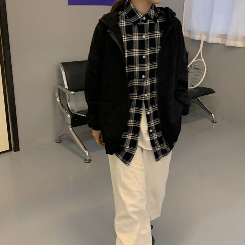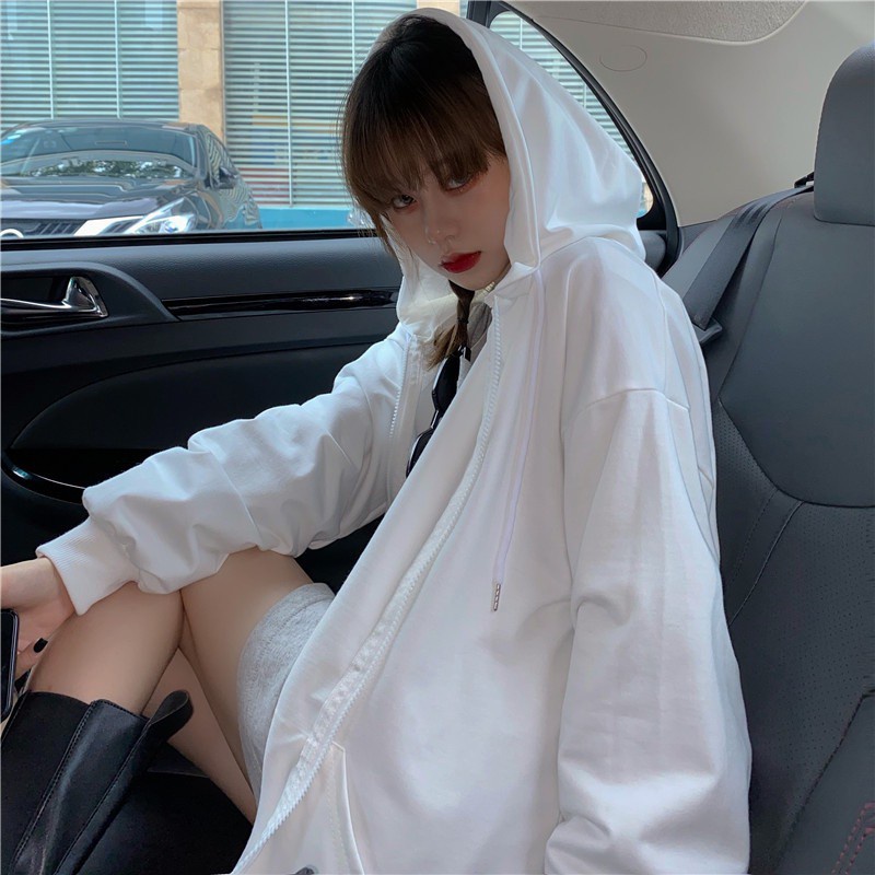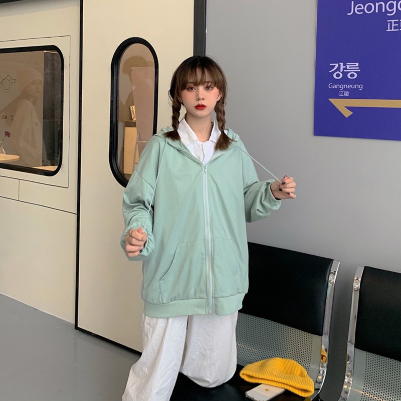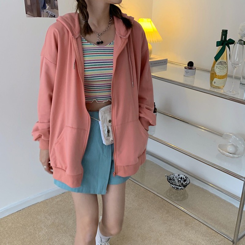 เสื้อกันหนาวผู้หญิง มีซิป มีฮู้ดสไตล์เกาหลี