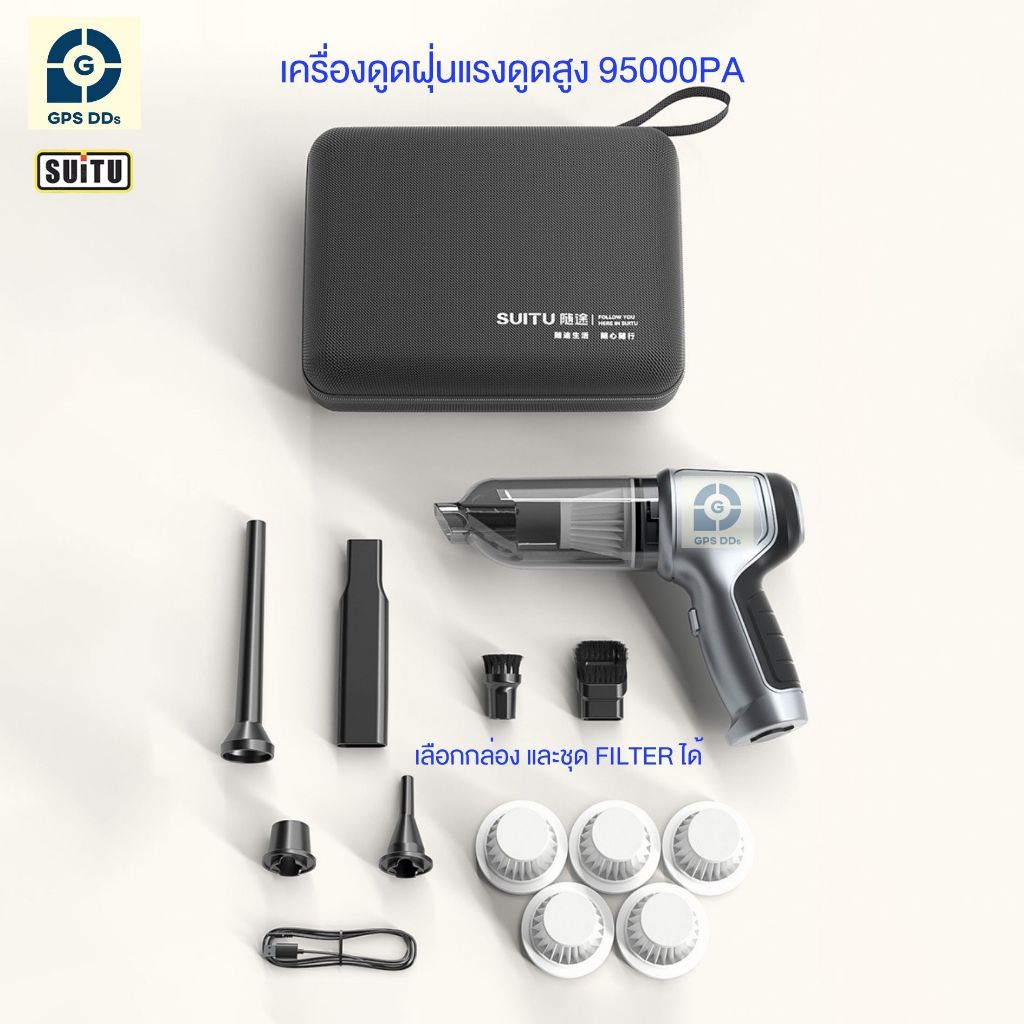 GPSDD SUITU รุน ST-6645Pro ของแท้ เครื่องดูดฝุ่นแบบพกพา ใช้ในรถ และในบ้าน แรงดูดสูงถึง 95000Pa ใช้ได้ทั้งเป่าและดูด