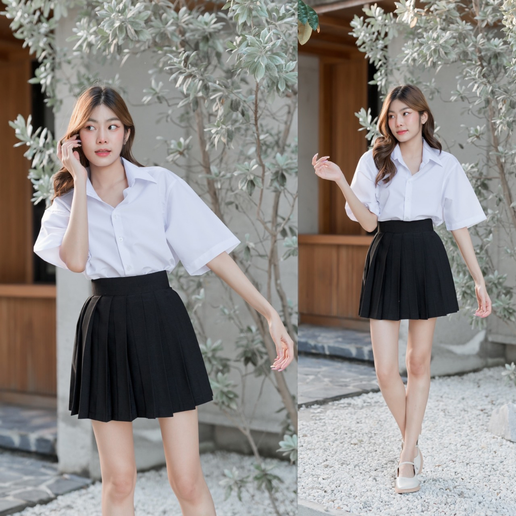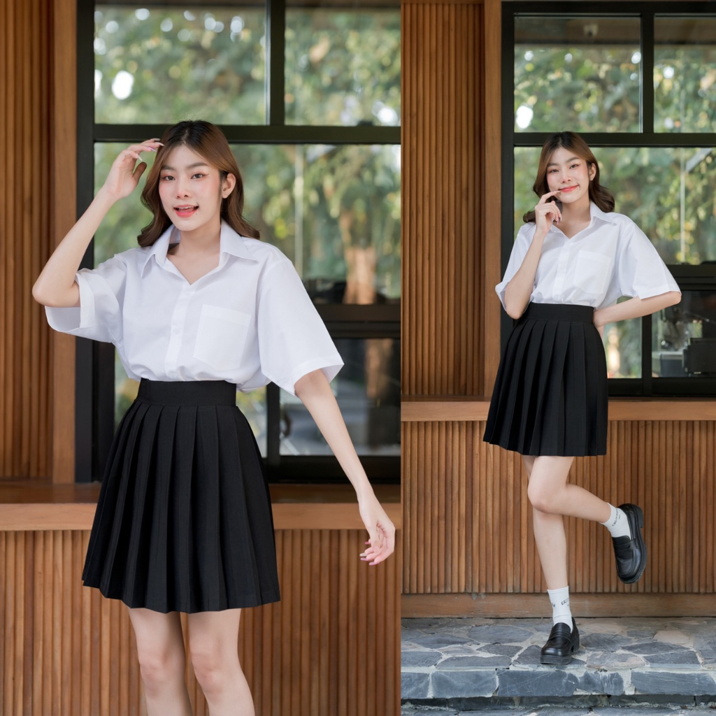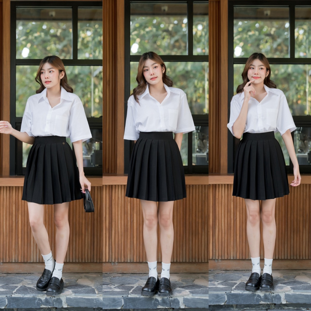 กระโปรงพลีทนักศึกษา กระโปรงพลีทมีขอบ เอวขอบจีบใหญ่-จีบทวิส