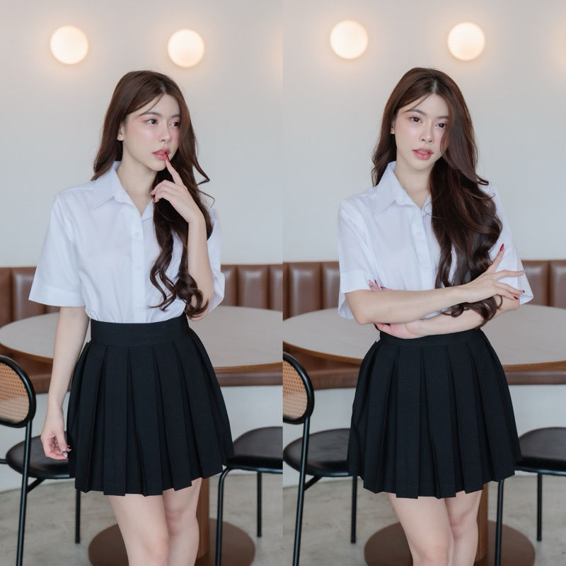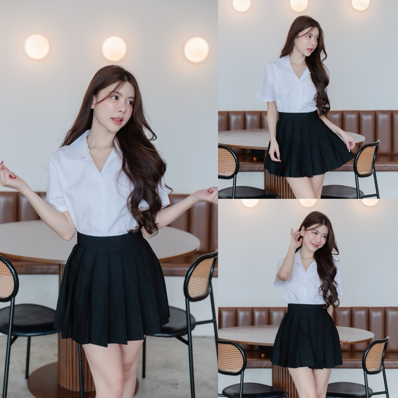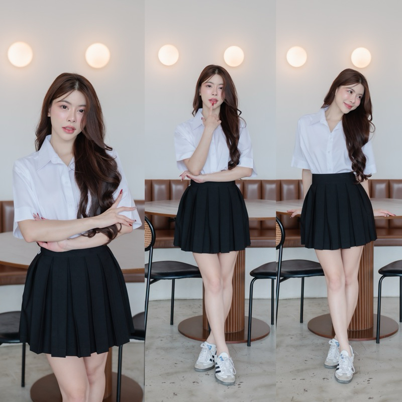 สินค้าพร้อมส่ง ไม่ต้องรอพรีค่า กระโปรงพลีทเอวขอบกระโปรงเทนนิสจีบใหญ่อัดจีบแน่นคมสวย ใส่แล้วดูเอวเล็ก เห็นสัดส่วนของเอวชัดขึ้นสวยมากๆค่า