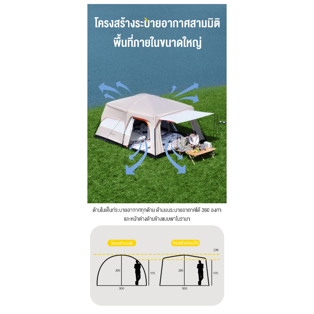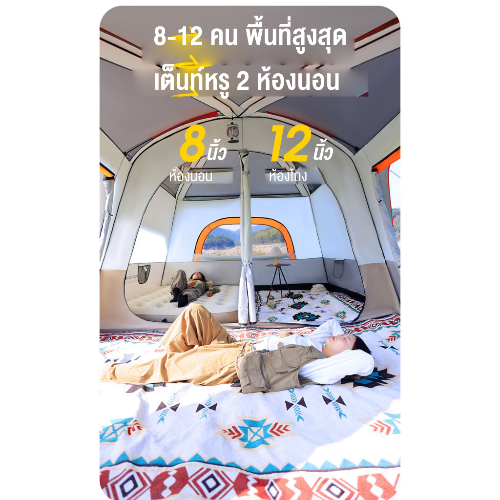 Habitat Camp เต็นท์กันน้ำ เต็นท์ตั้งแคมป์ เต็นท์ปิคนิค เต็นท์ขนาดใหญ่พิเศษ สามารถรองรับได้12 คน 2 ห้อง และ1ห้องนั่งเล่น