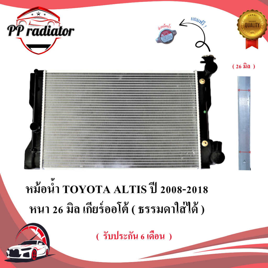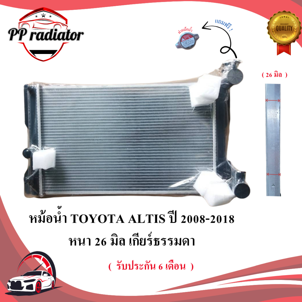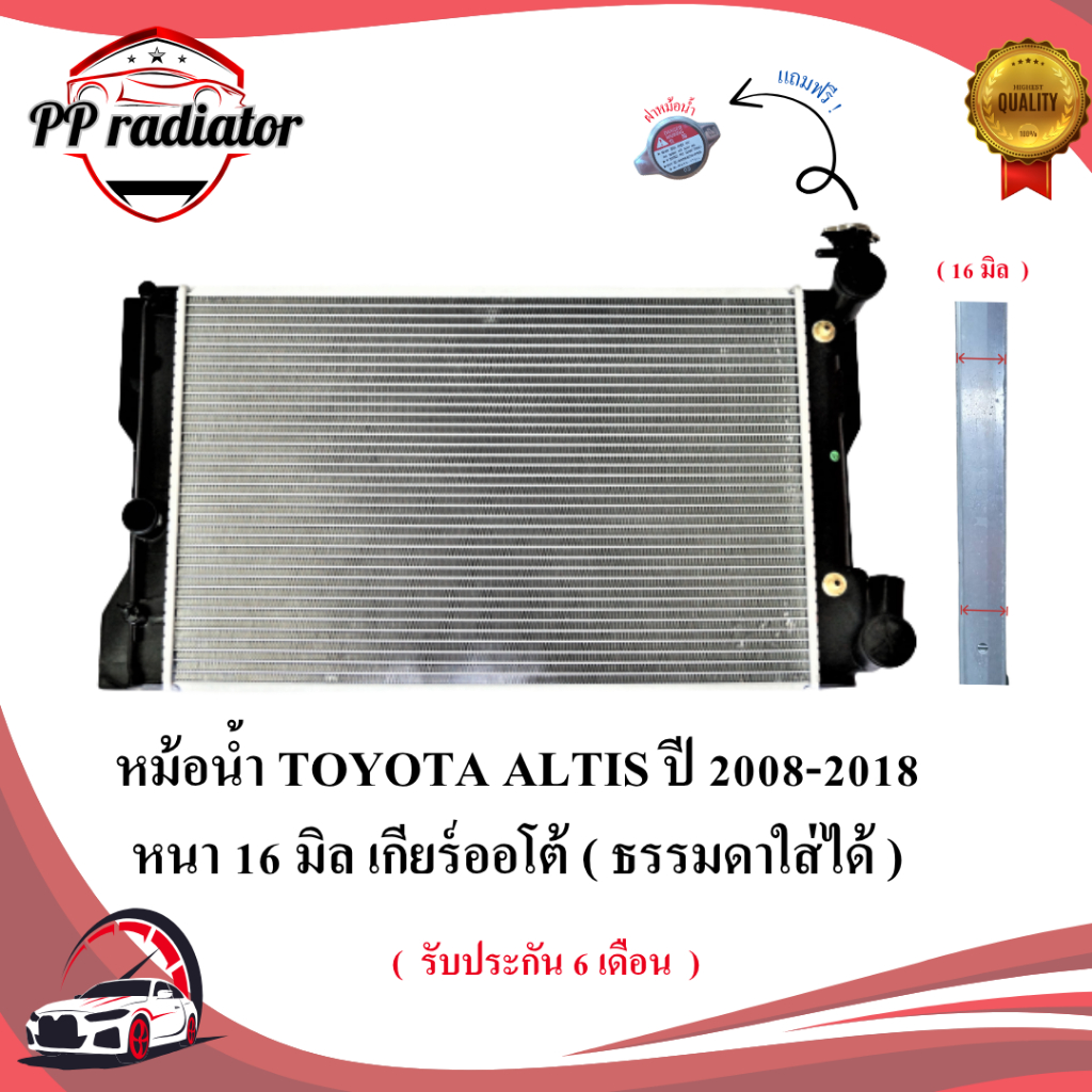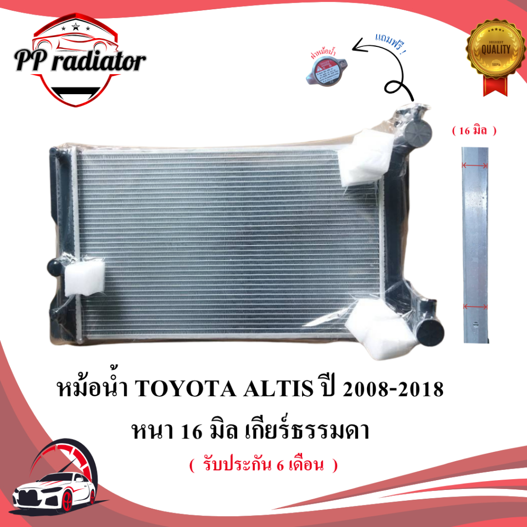 หม้อน้ำ TOYOTA ALTIS ปี 2008-2018 เกียร์ออโต้ / เกียร์ธรรมดา หนา 16 / 26 มิล