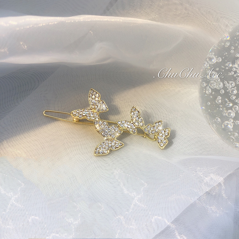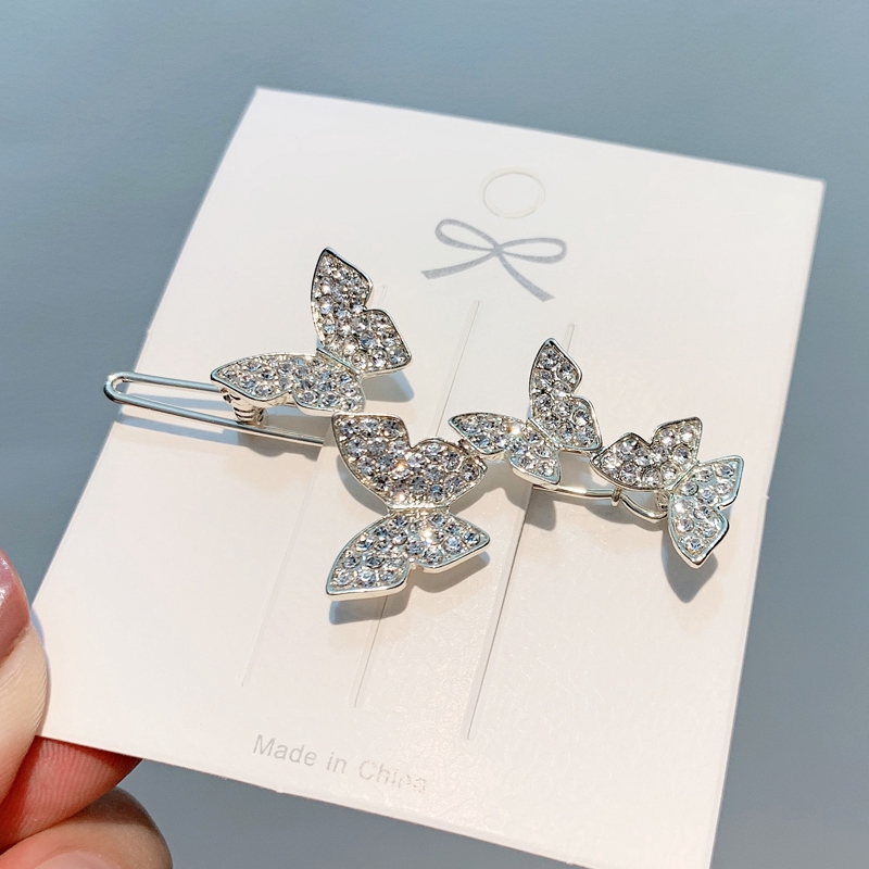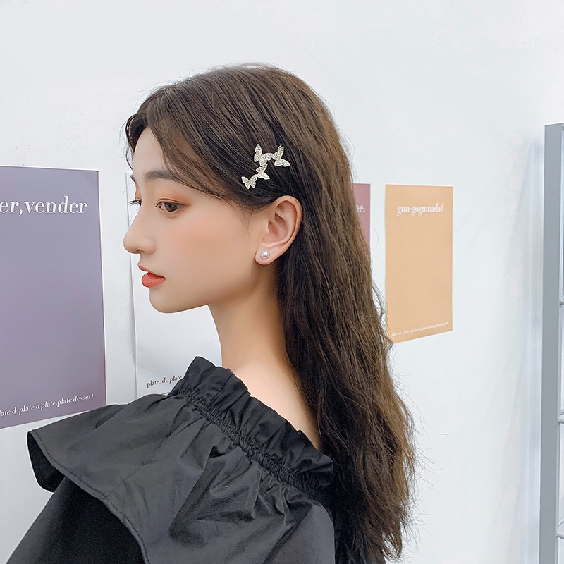 กิ๊บติดผม จี้รูปผีเสื้อ ประดับเพชร สไตล์เกาหลี สําหรับผู้หญิง