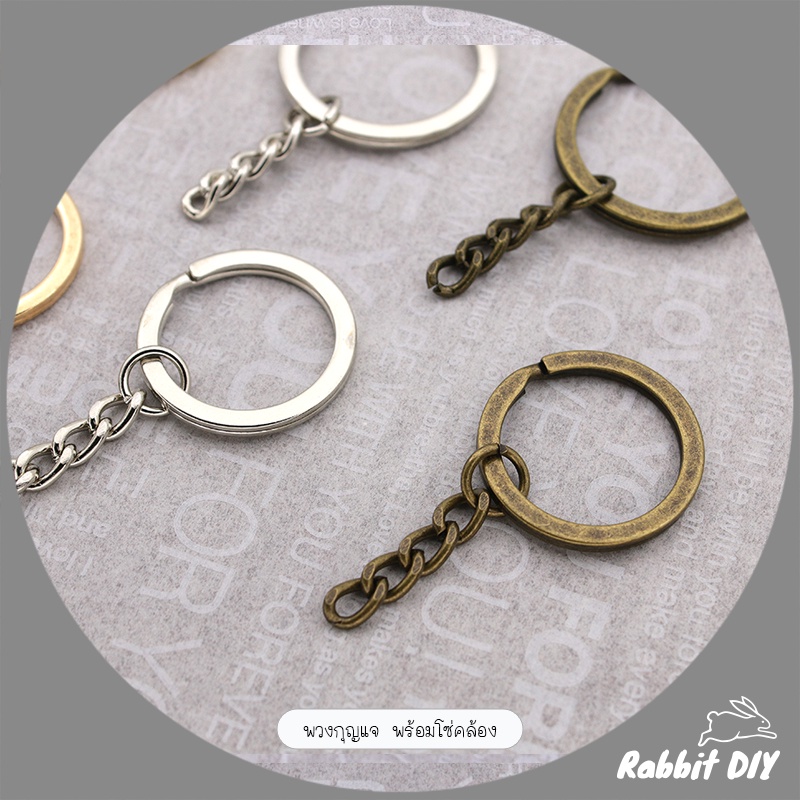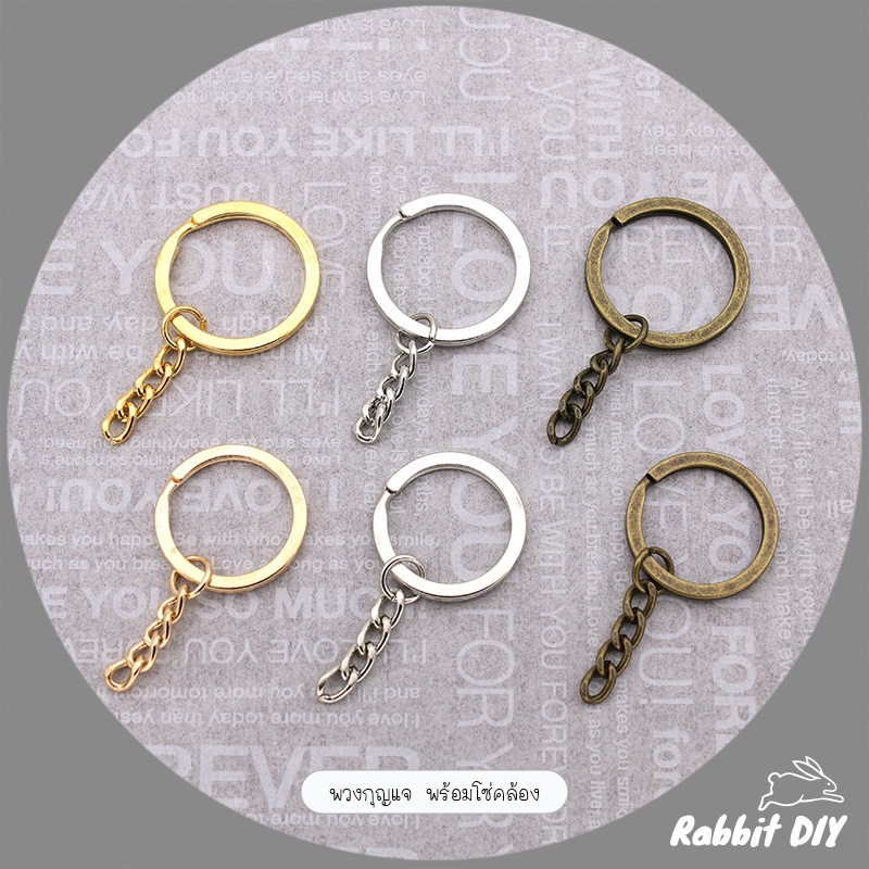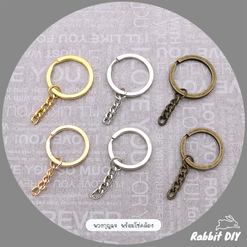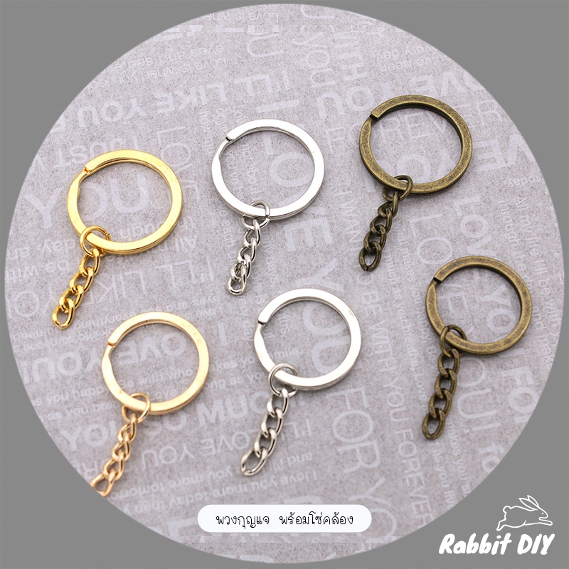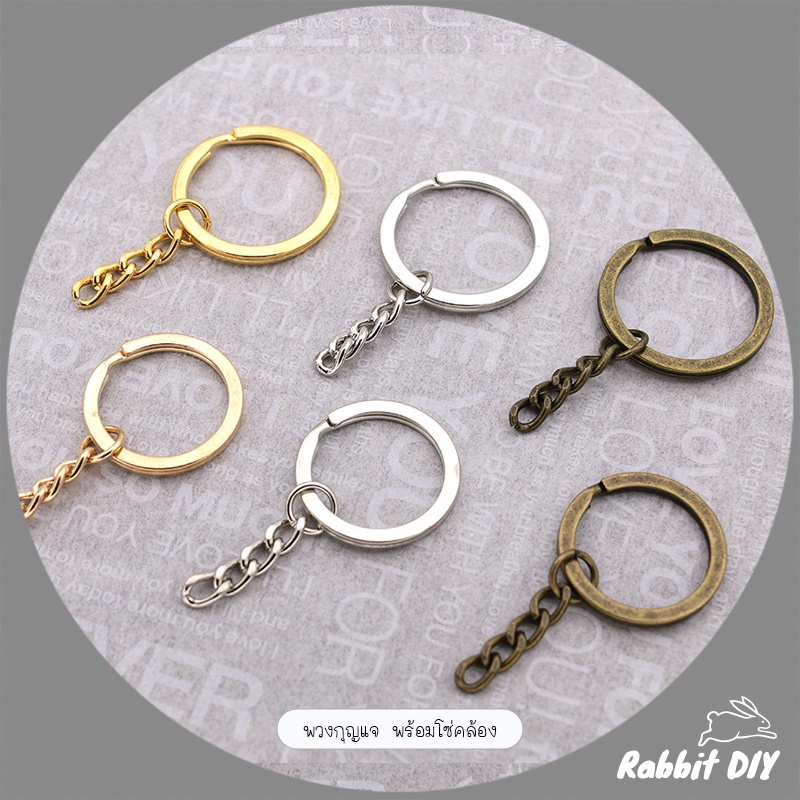 พวงกุญแจ พร้อมโซ่คล้อง มีหลายขนาด สีทอง สีเงิน และสีทองเหลืองเก่า (แพ็ก 6 ชิ้น)