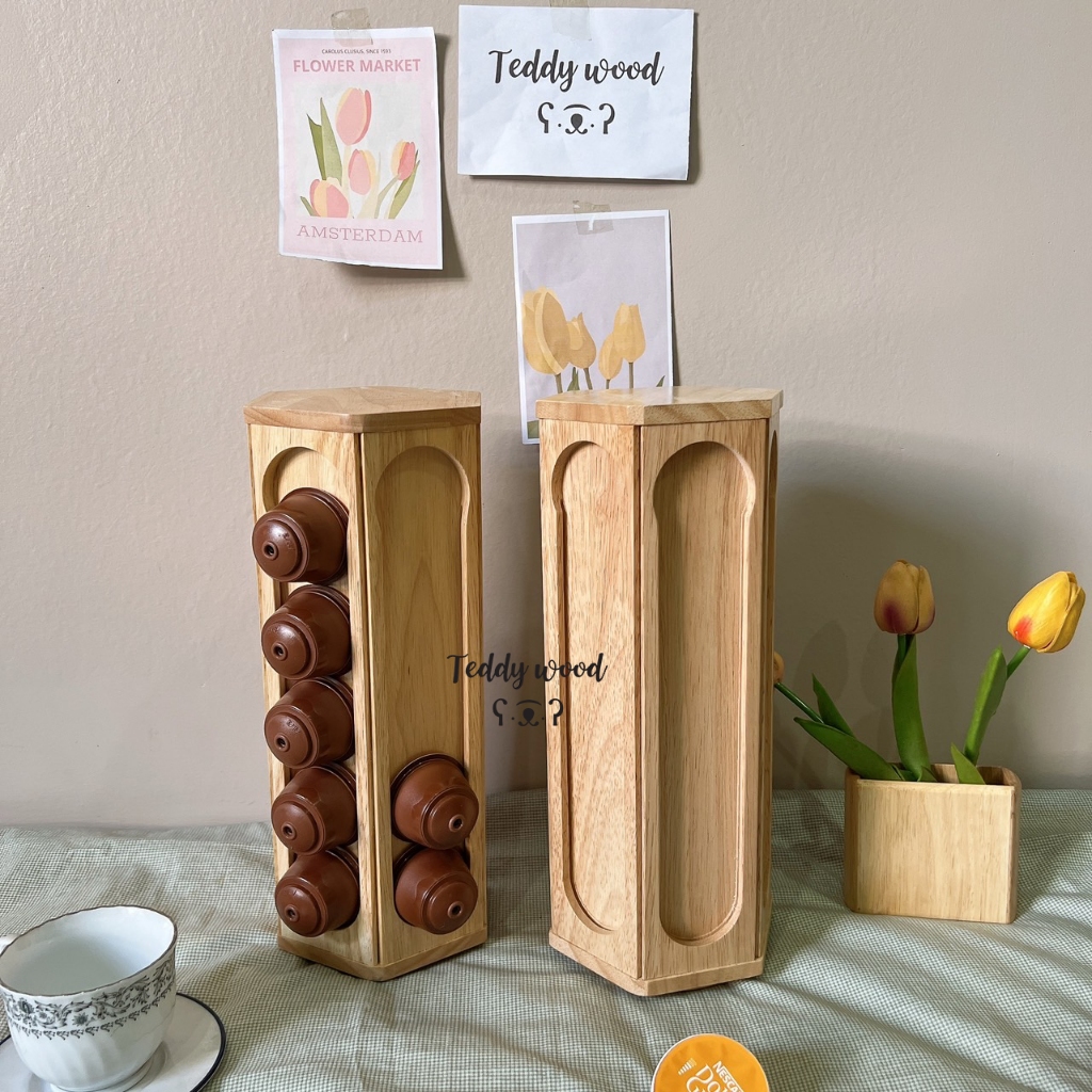 ชั้นวางแคปซูลกาแฟ หมุนได้ มี 2 แบบ (ขนาดถ้วยใหญ่) dolce gustoไม้จริง พร้อมส่ง