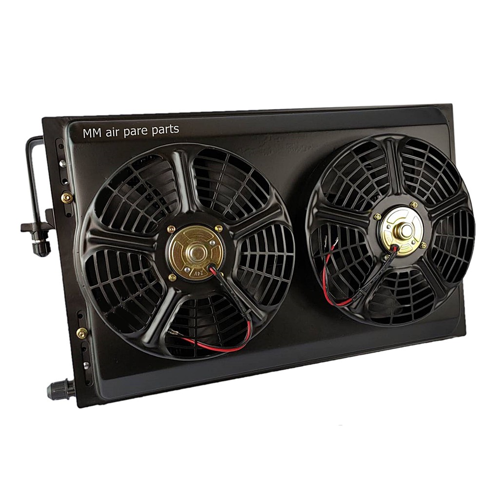 ของใหม่!! ถูกที่สุด แผงแอร์ 14 x 23 นิ้ว หนา 32มม. พร้อมพัดลมคู่ 24V เตเปอร์ แผงคอนเดนเซอร์ รังผึ้งแอร์ คอล์ยร้อน เตเปอร