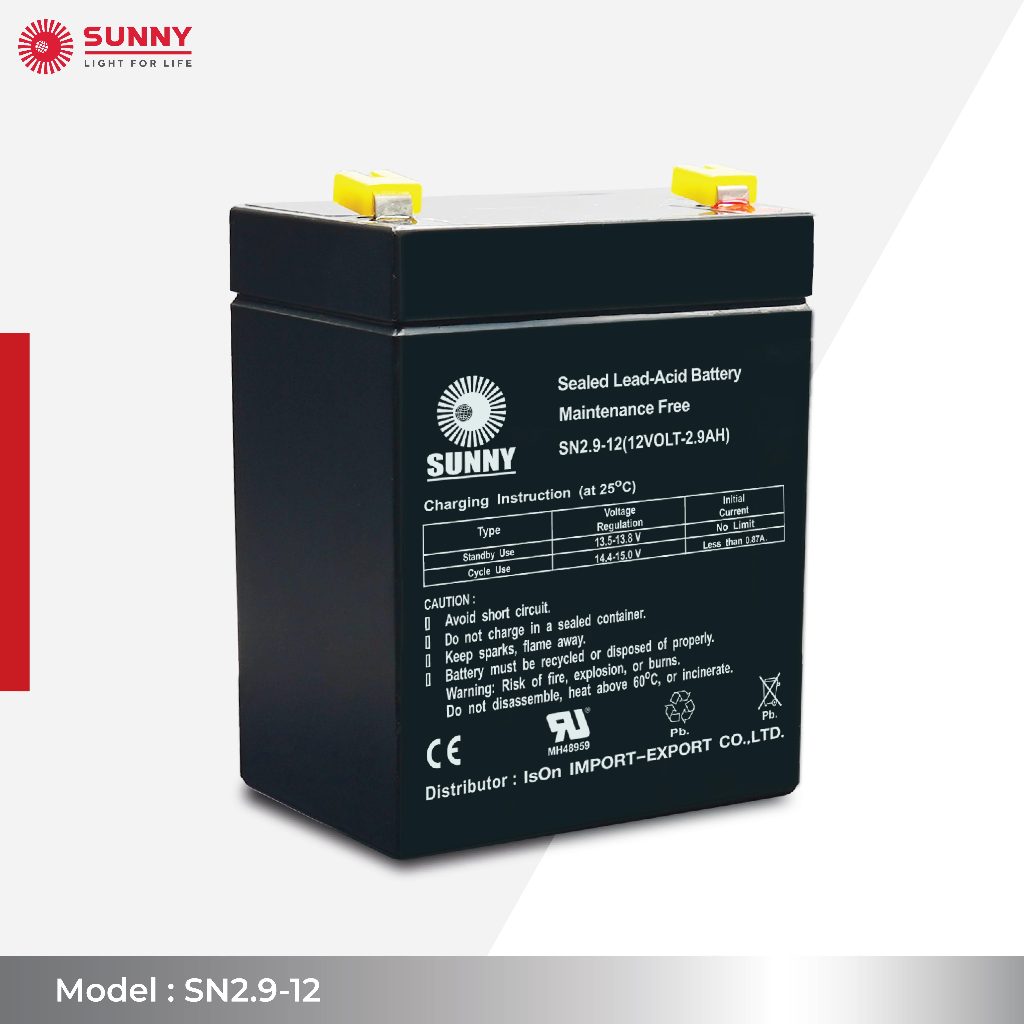 SUNNY เเบตเตอรี่เเห้ง SLA 12V 2.9Ah รุ่น SN2.9-12 Battery Sealed Lead Acid เหมาะสำหรับ ไฟสำรองฉุกเฉิน/UPS/ระบบเตือนภัย