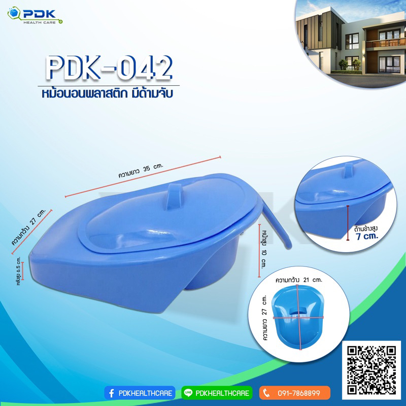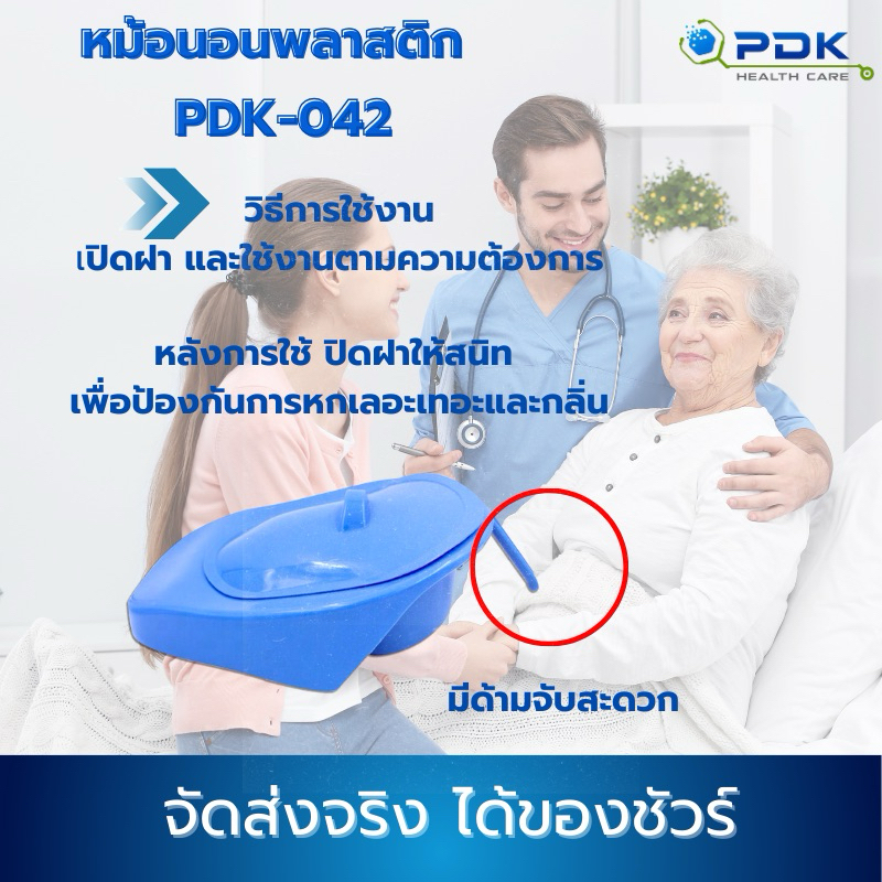 หม้อนอน กระโถน หม้อนอนพลาสติก รองขับถ่าย มีด้ามจับ (มีฝาปิด) รุ่น PDK-042
