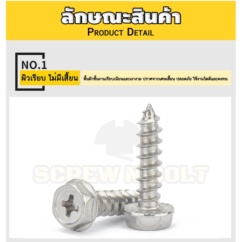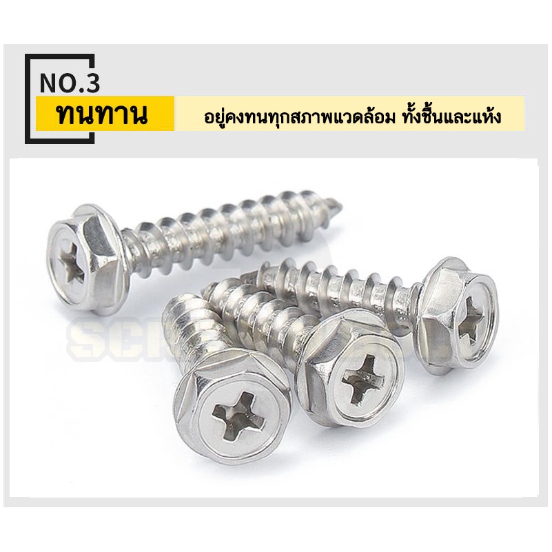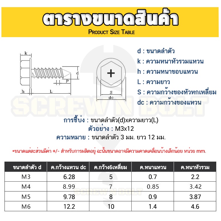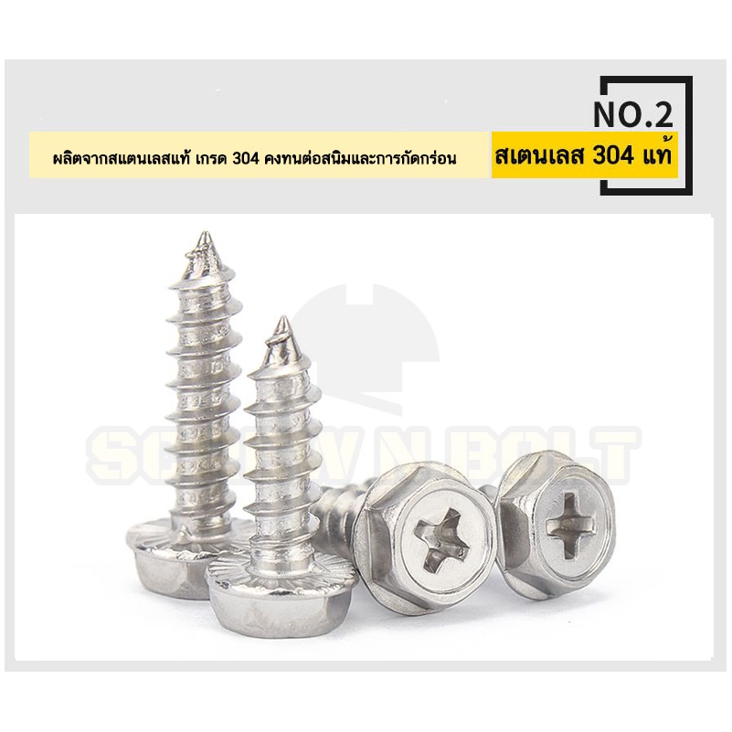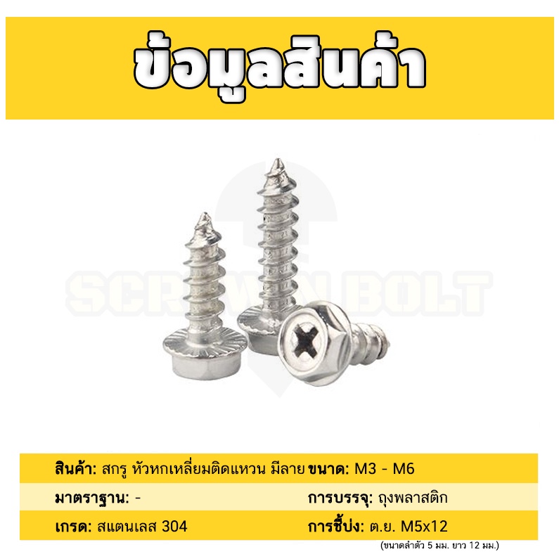 ? ชื่อรายการสินค้า : สกรู น็อต หัวหกเหลี่ยมติดแหวน ติดจาน แฉก มีลาย สแตนเลส 304 เกลียวปล่อย M3M4M5M6