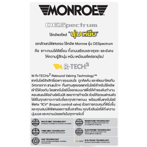 MONROE รุ่น OESpectrum ถูกคิดค้น และพัฒนาโดยทีมวิศวกรจากมอนโร ที่ผสมผสานสุดยอดเทคโนโลยีเข้าด้วยกันอย่างลงตัว