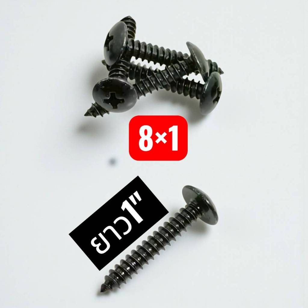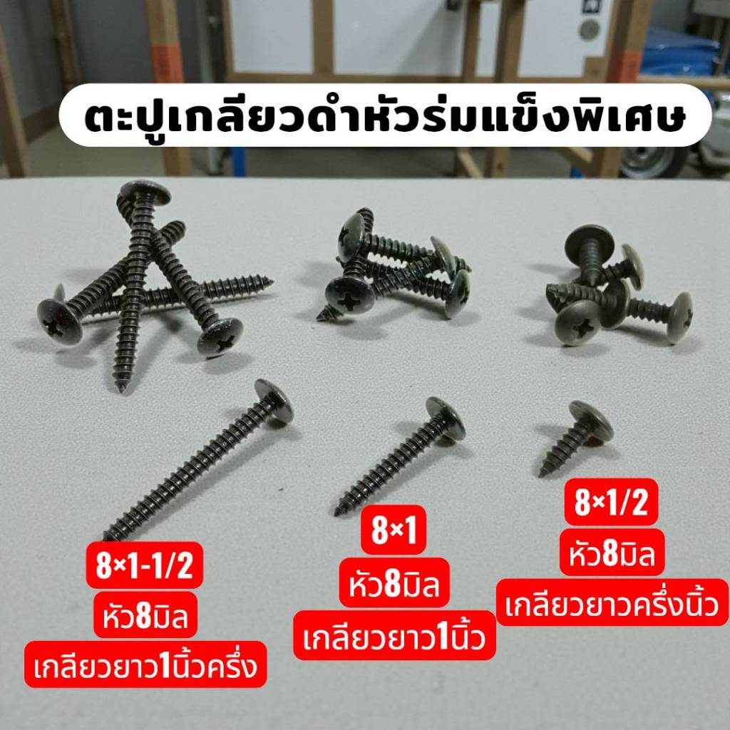 ตะปูเกลียวดำหัวร่มชุบดำขนาด8×1/2-8×1-8×1-1/2(1ถุงจำนวน50ตัว/ถุง)