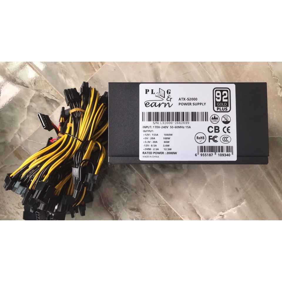 Power Supply Bitcoin High Efficiency ATX Server PSU 2000W Mining rig 90 Plus for Ethereum Professional Rig GPU