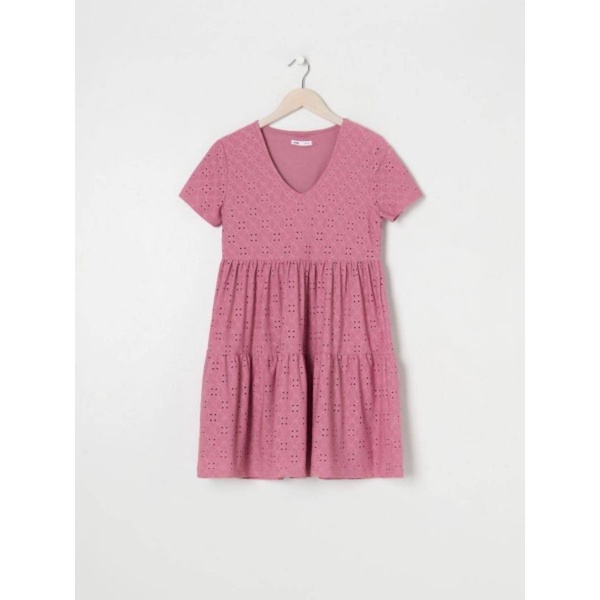 Sinsay เดรสสีชมพู คอวี ผ้ายืด ด้านในมีซับใน ผ้าแต่งฉลุ งานสวย ทรงน่ารักมาก
